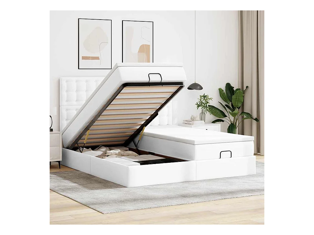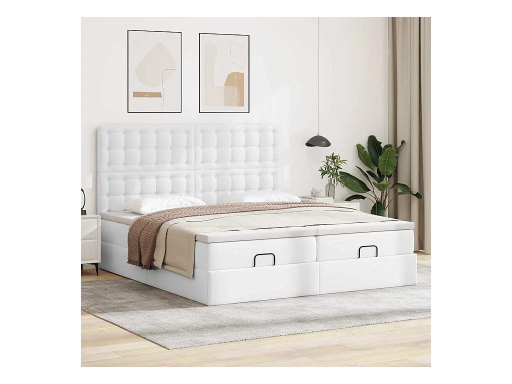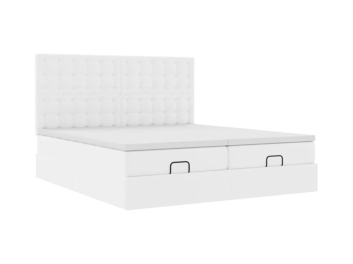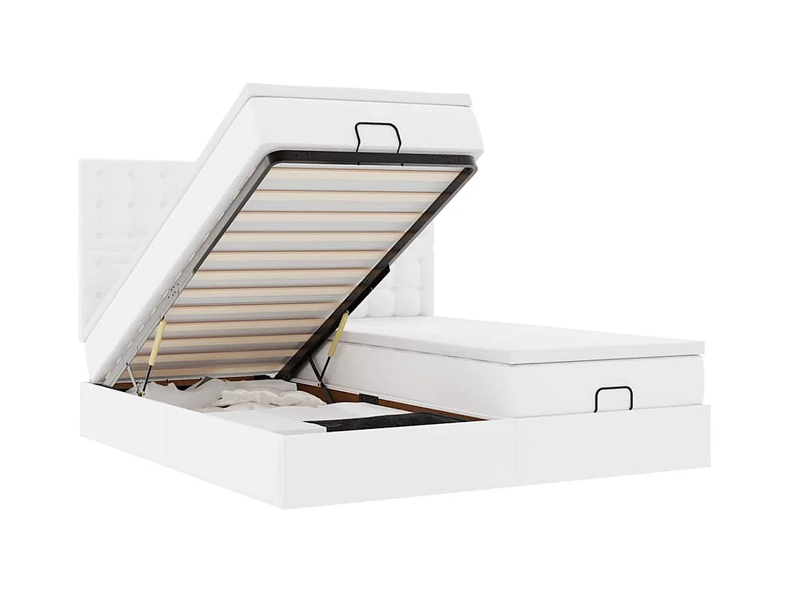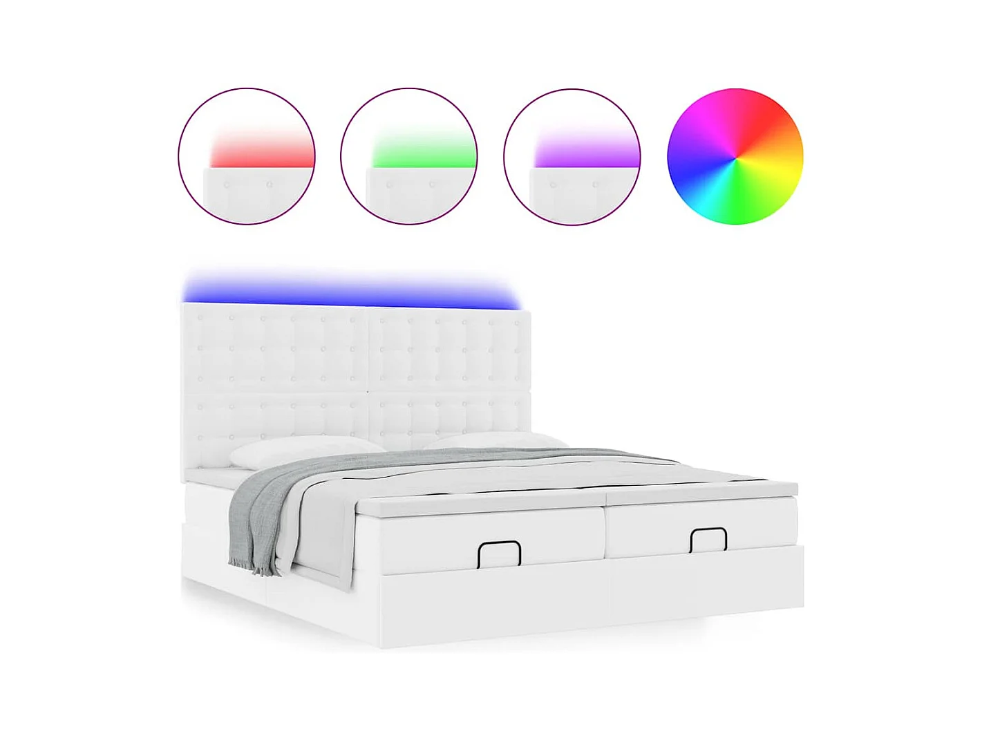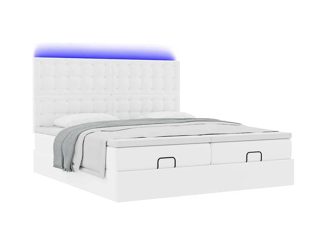 Ottoman-Bett mit Matratzen & LEDs Reinweiß 200x200cm Kunstleder