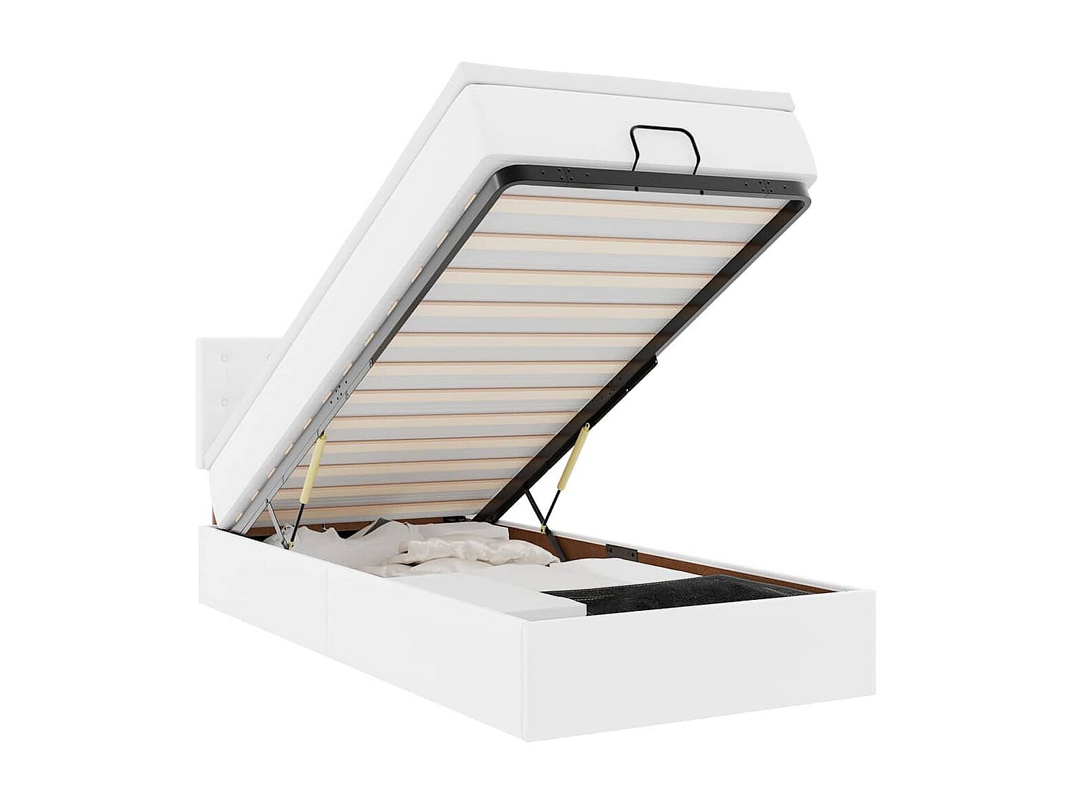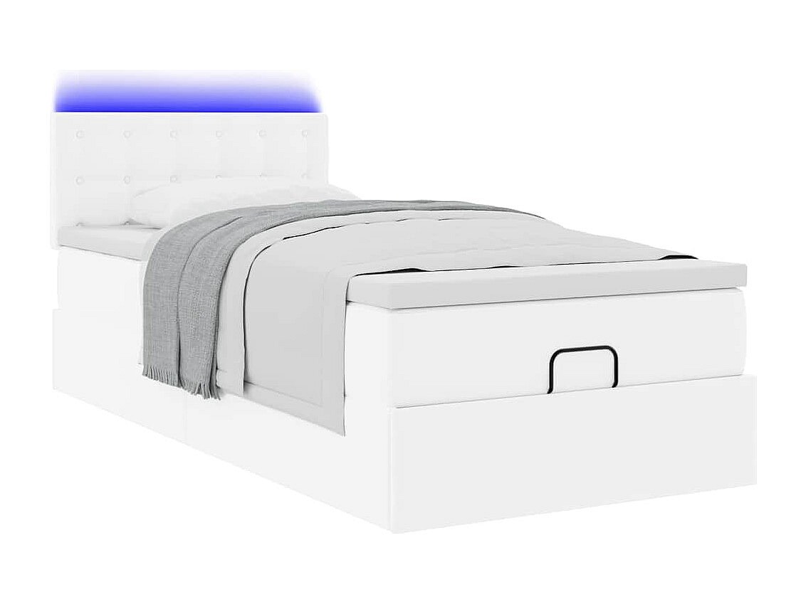 Ottoman-Bett mit Matratzen & LEDs Reinweiß 90x200 cm Kunstleder