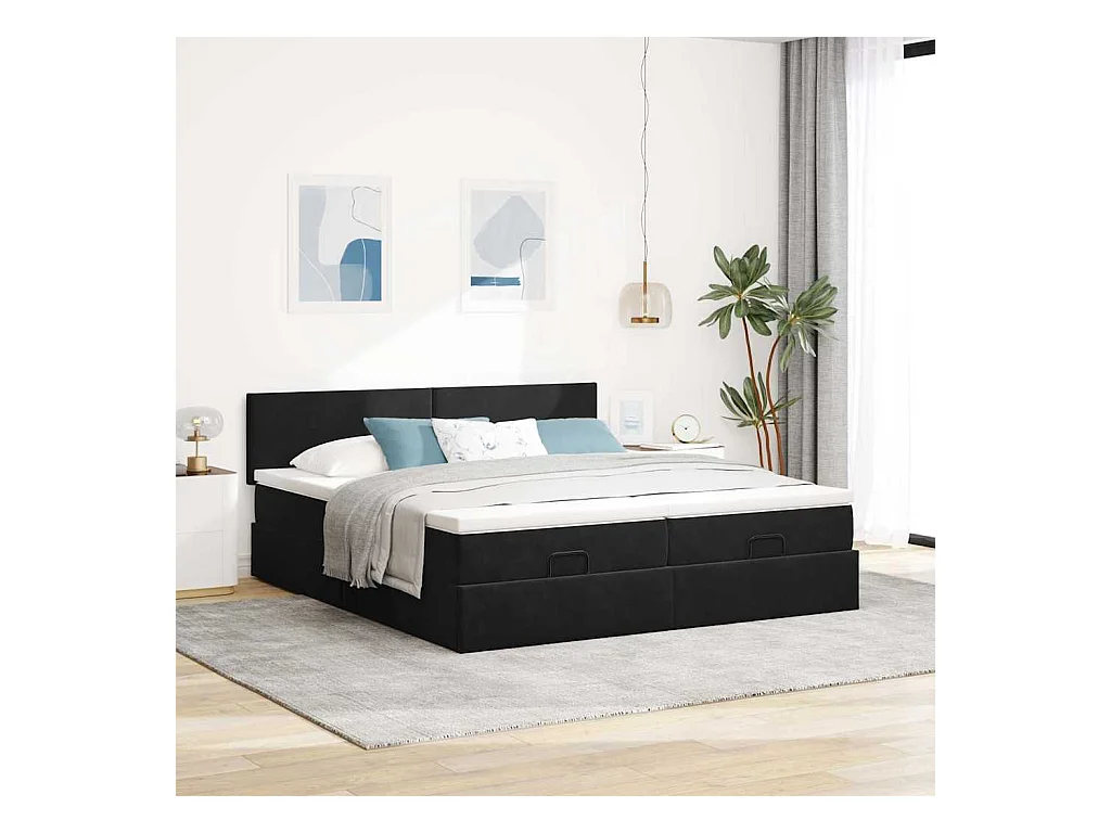 Ottoman-Bett mit Matratzen Schwarz 180x200 cm Samt