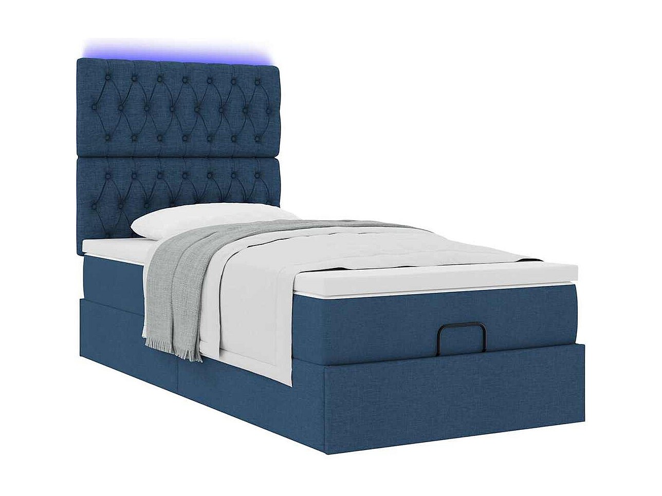 Ottomane Bett mit Matratze & LEDs Blau 90x200 cm Stoff