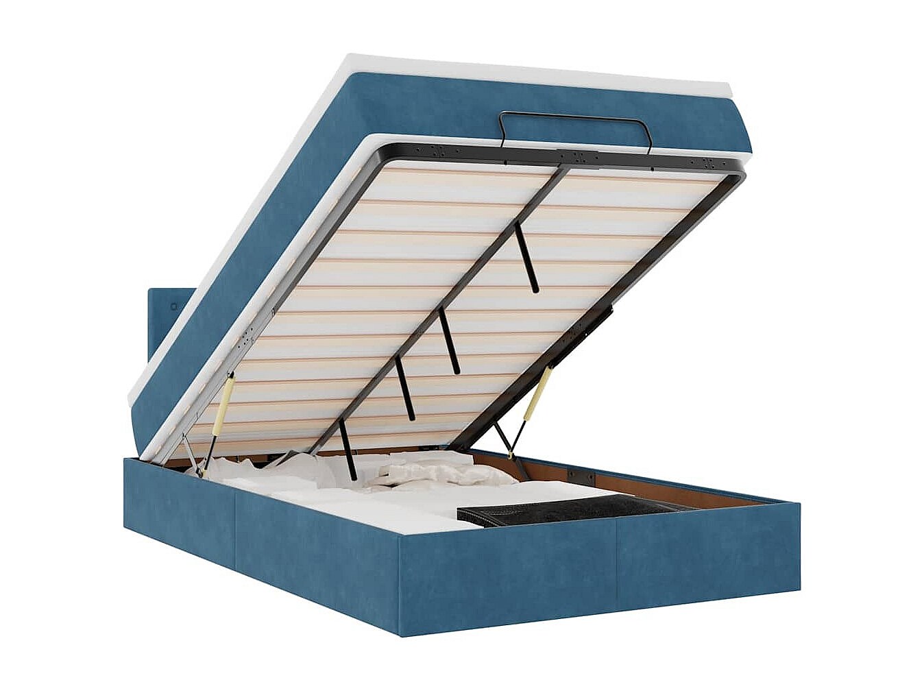Ottomane Bett mit Matratze & LEDs Dunkelblau 120x190 cm Samt
