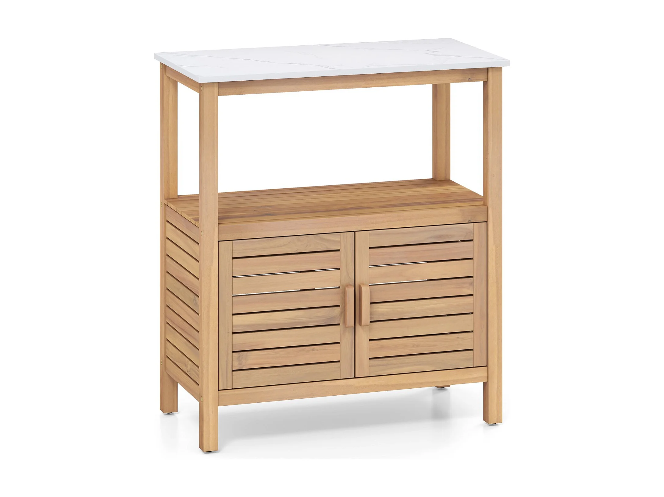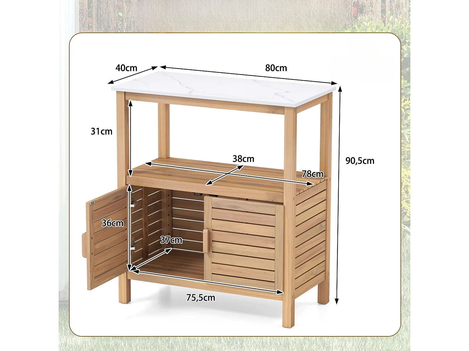 Outdoor-Arbeitstisch Garten-Pflanztisch aus Akazienholz mit Harztischplatte Ablagefach & Schrank Natur
