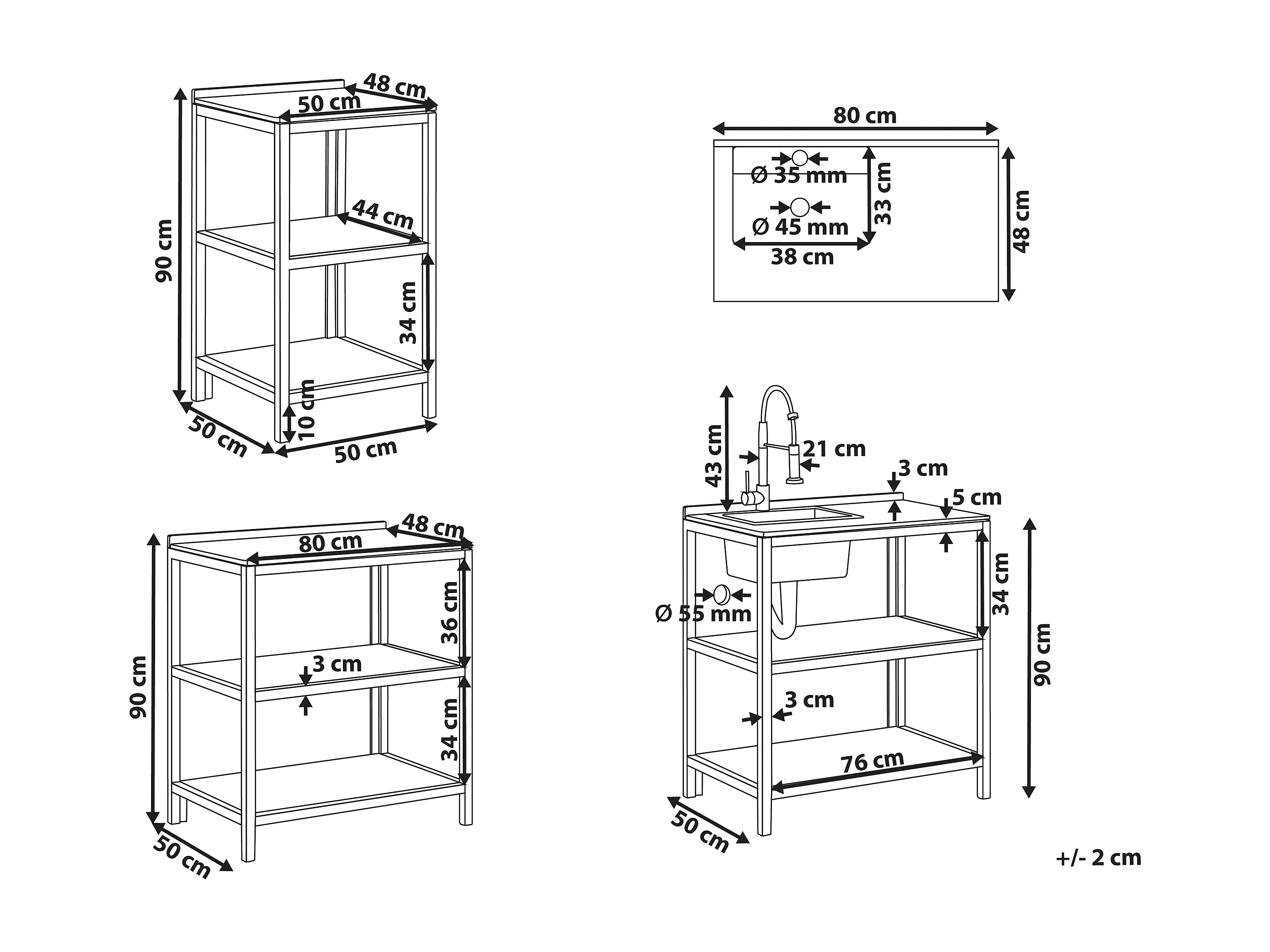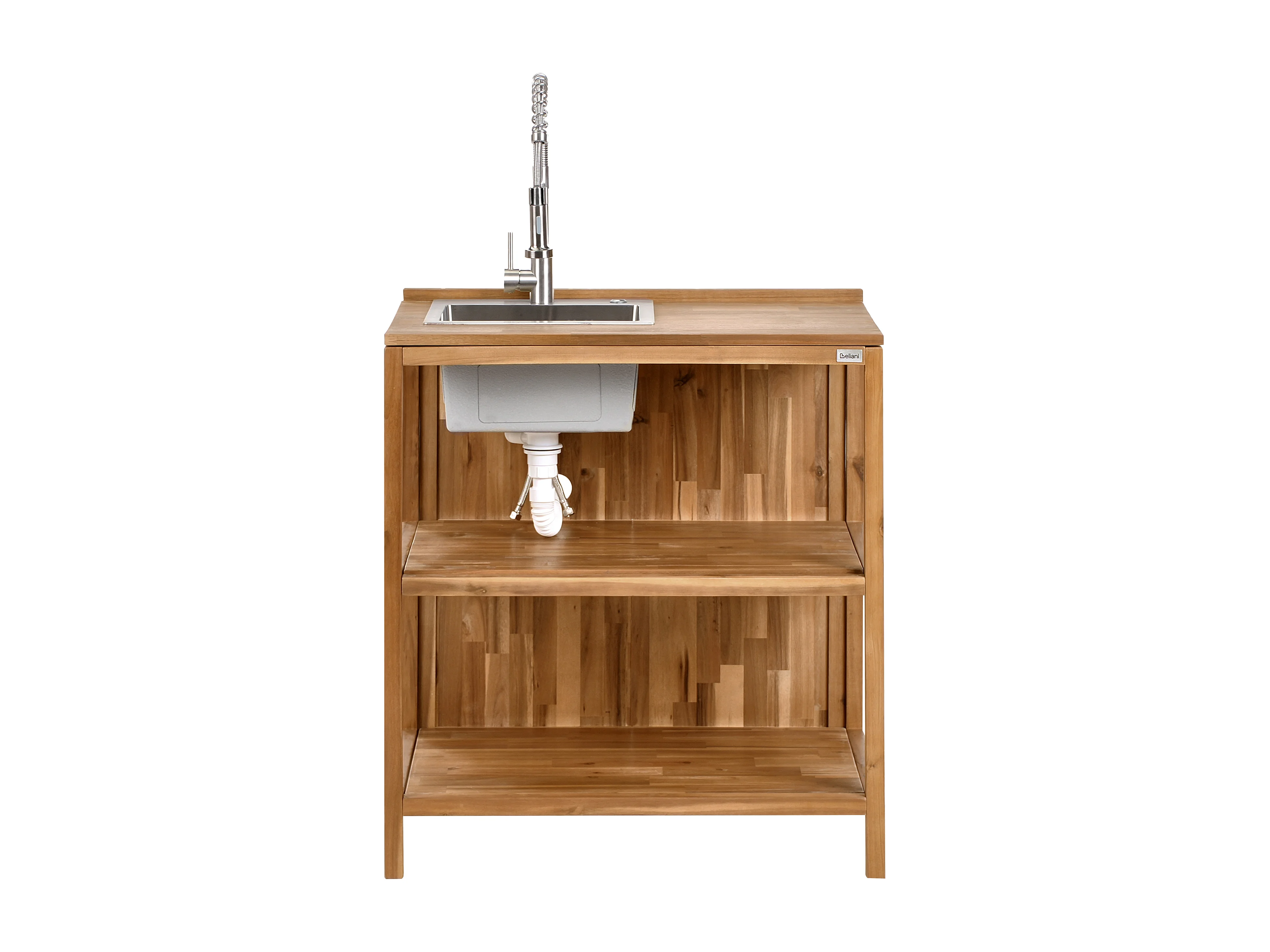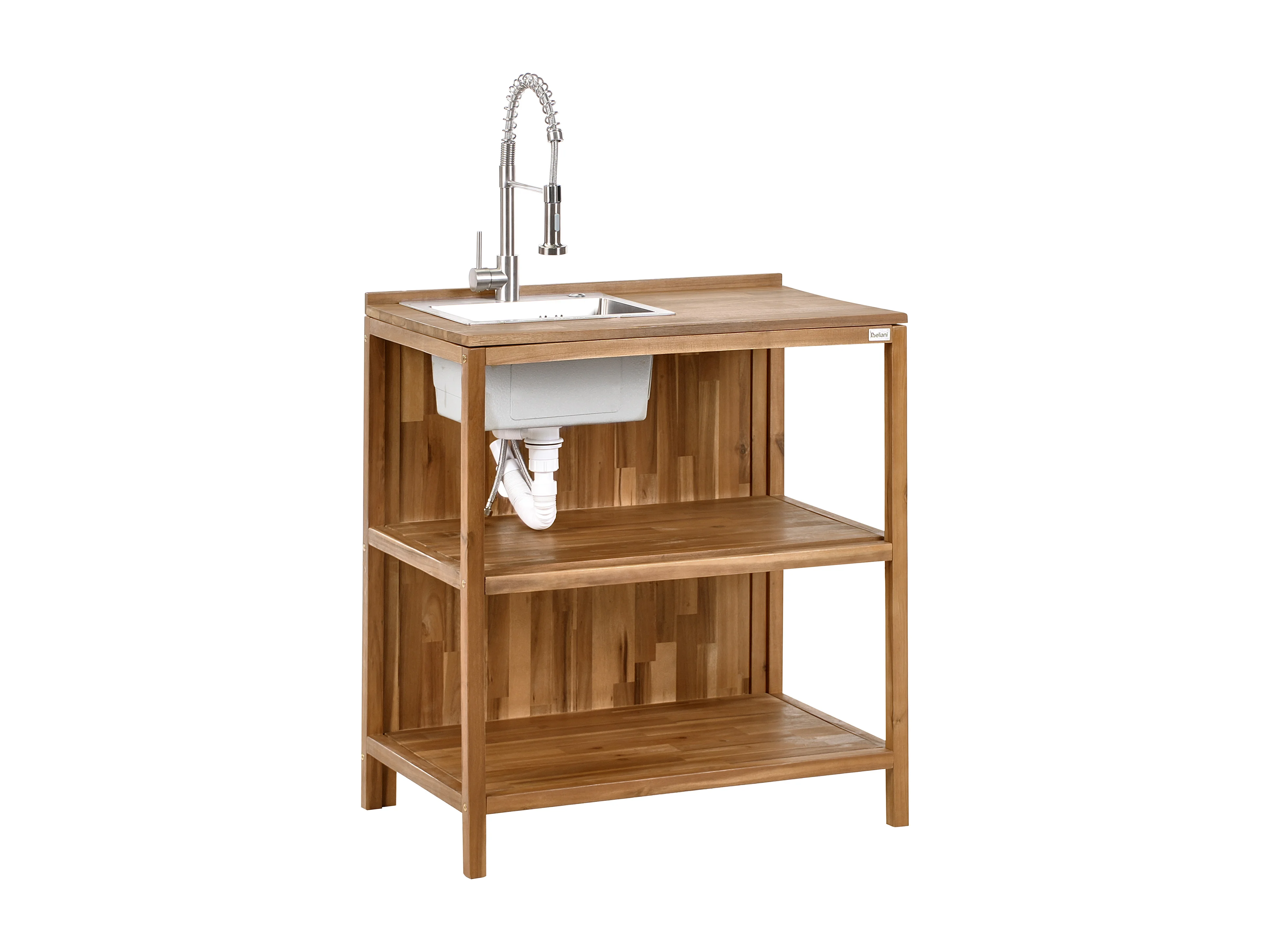 Outdoor-Kücheninsel 3-teilig Akazienholz braun/silber mit Spüle Armatur Venosa