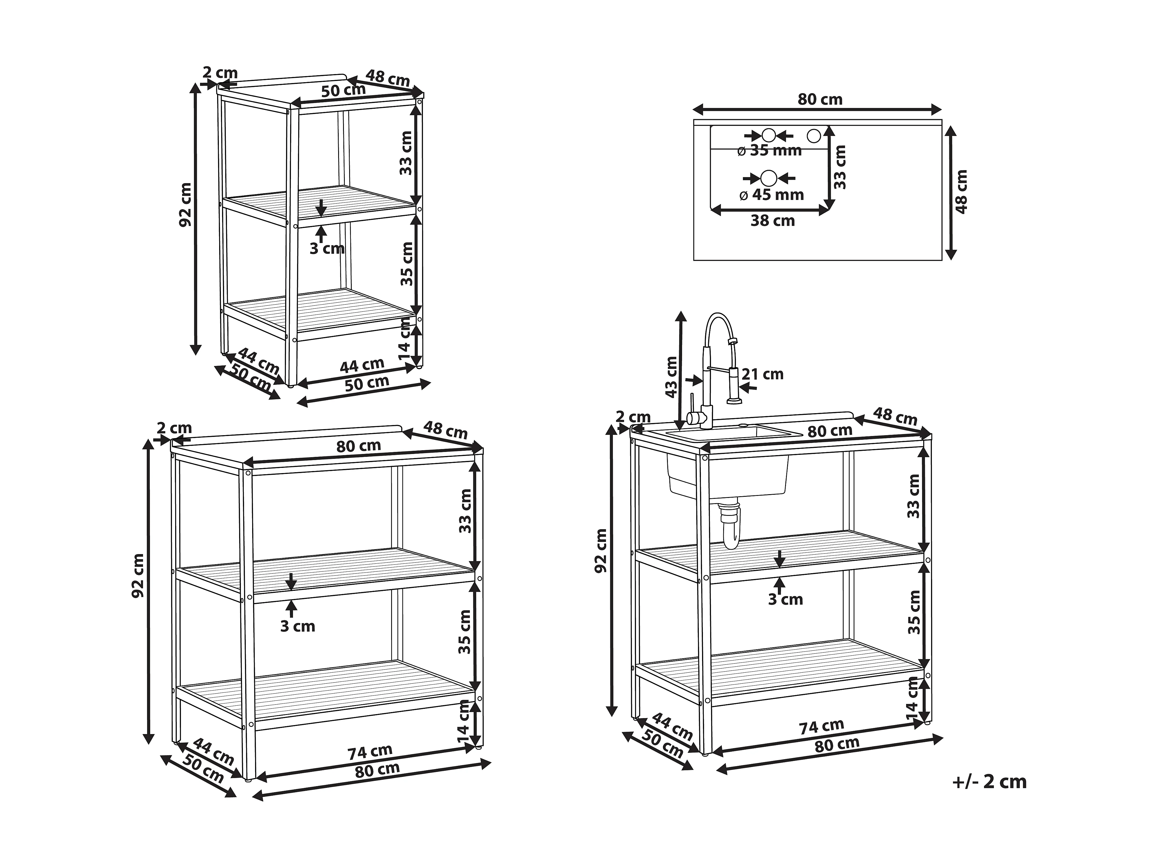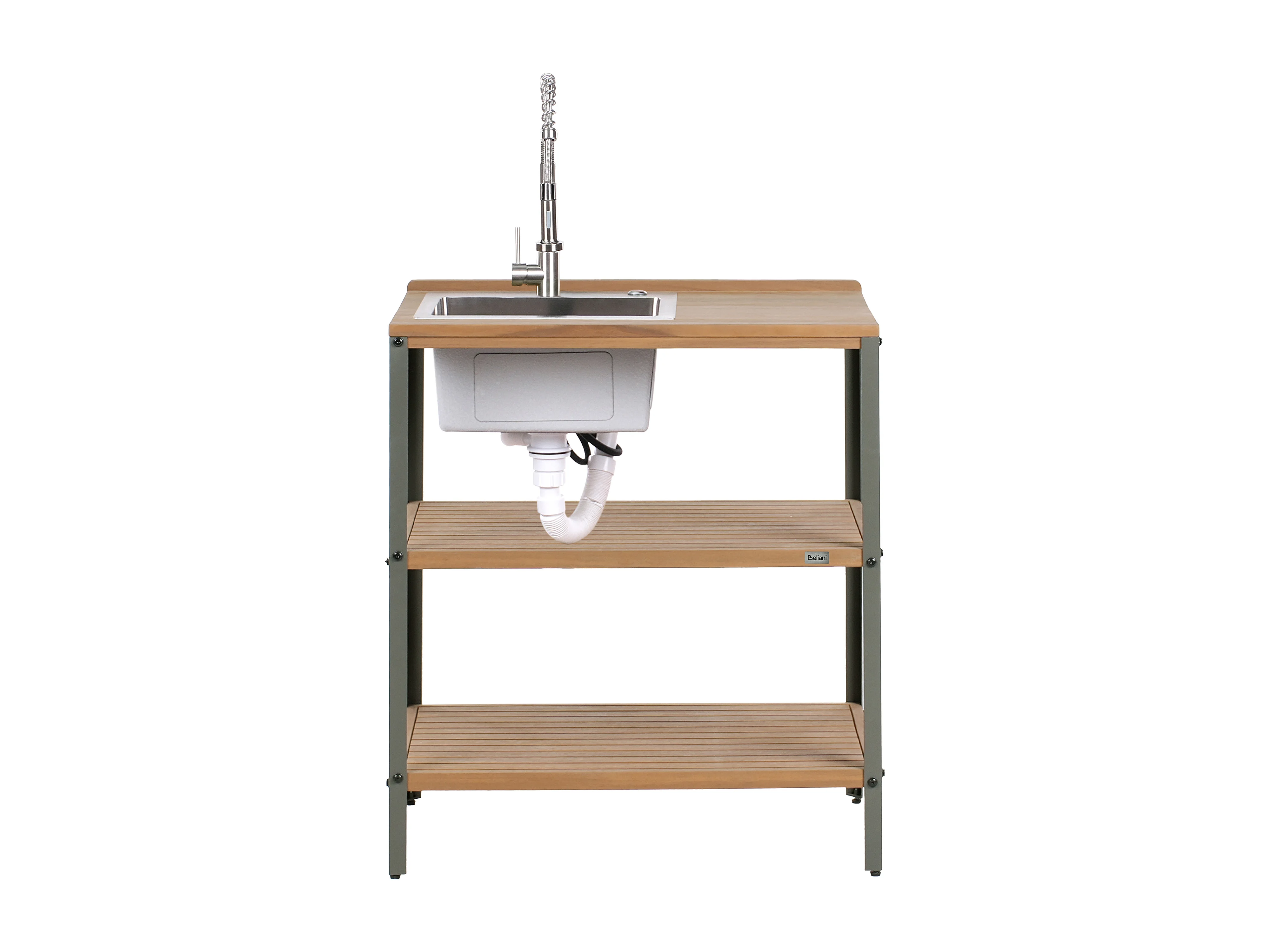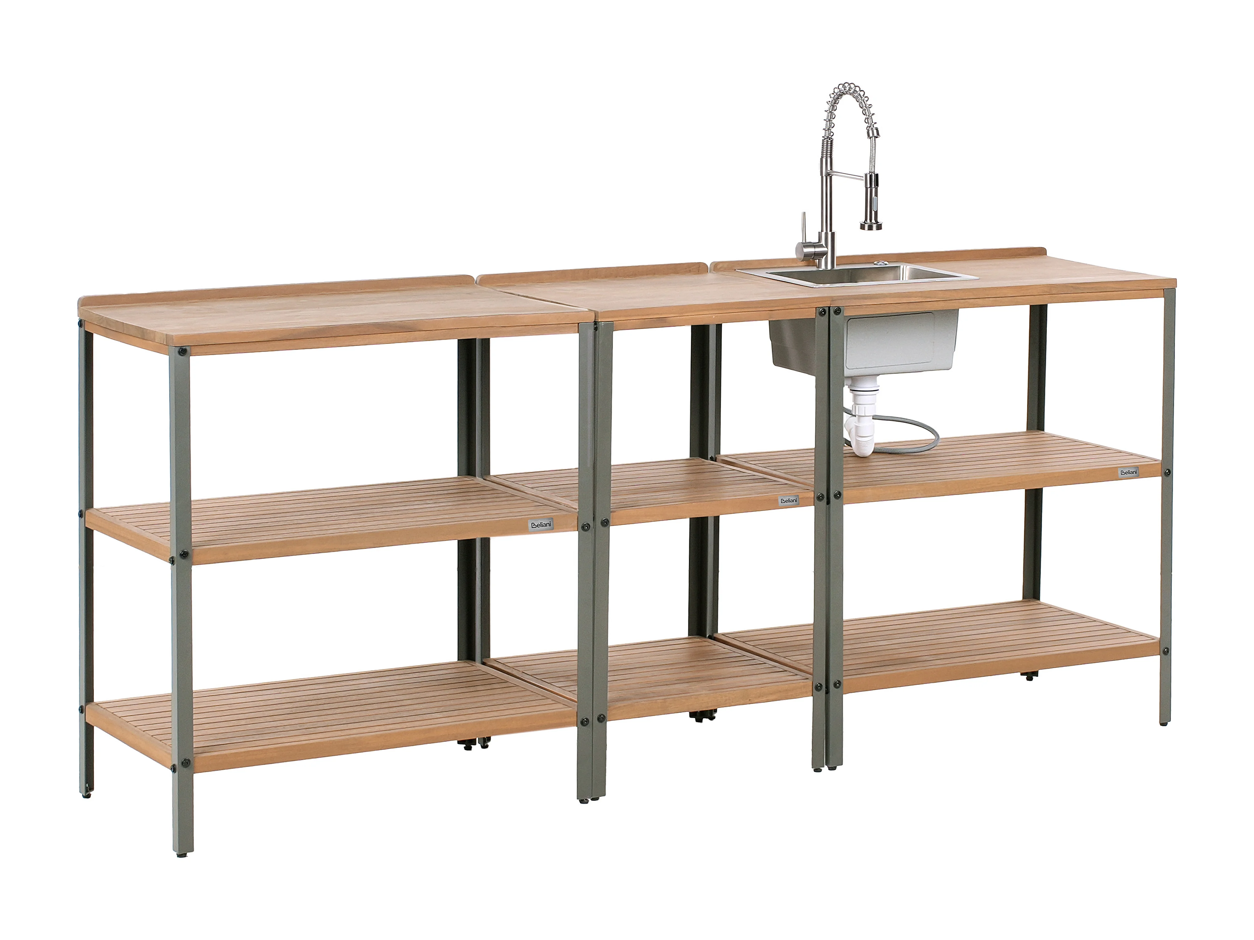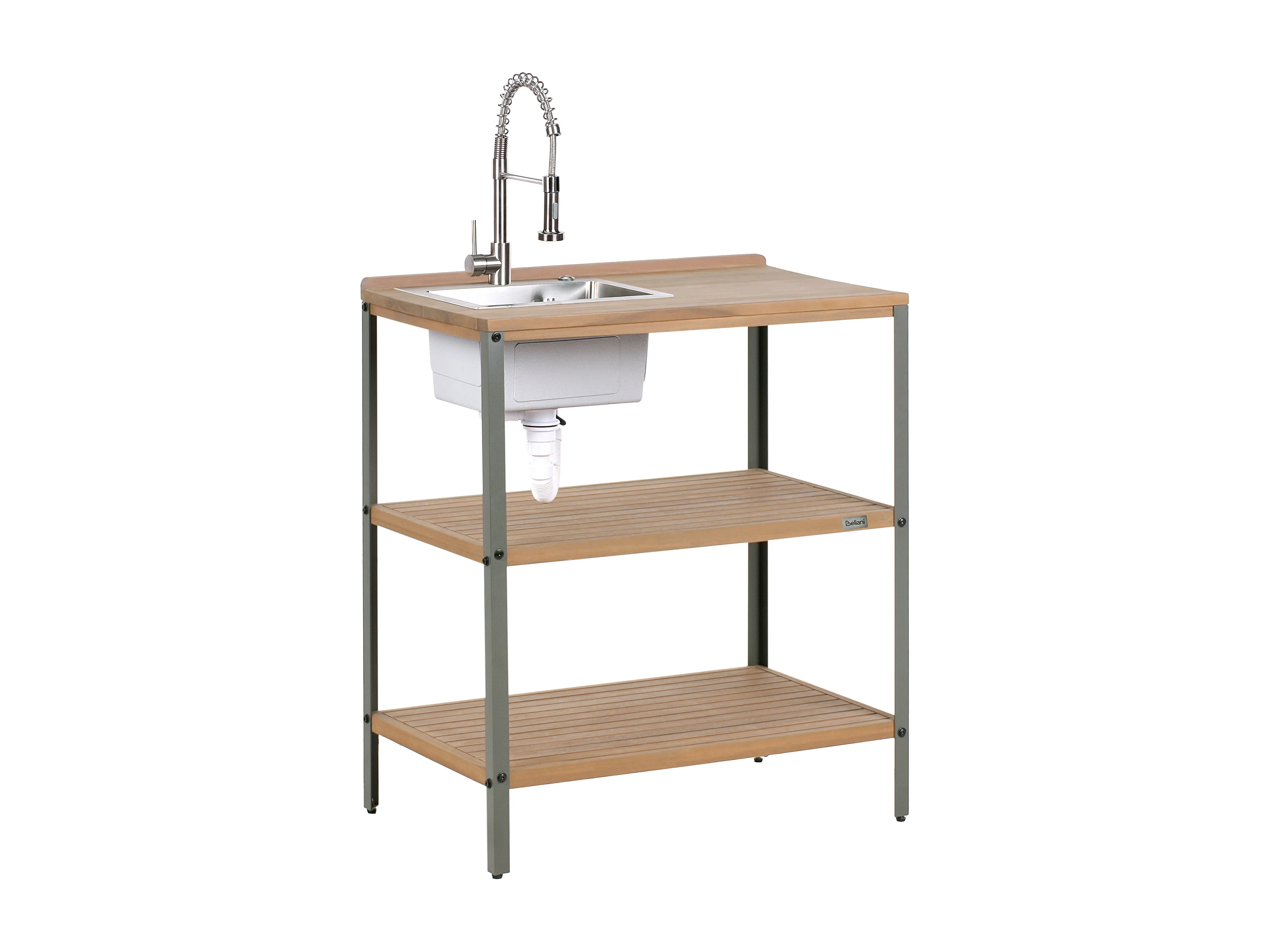 Outdoor-Kücheninsel 3-teilig zertifiziertes Holz braun/silber mit Spüle Ivrea