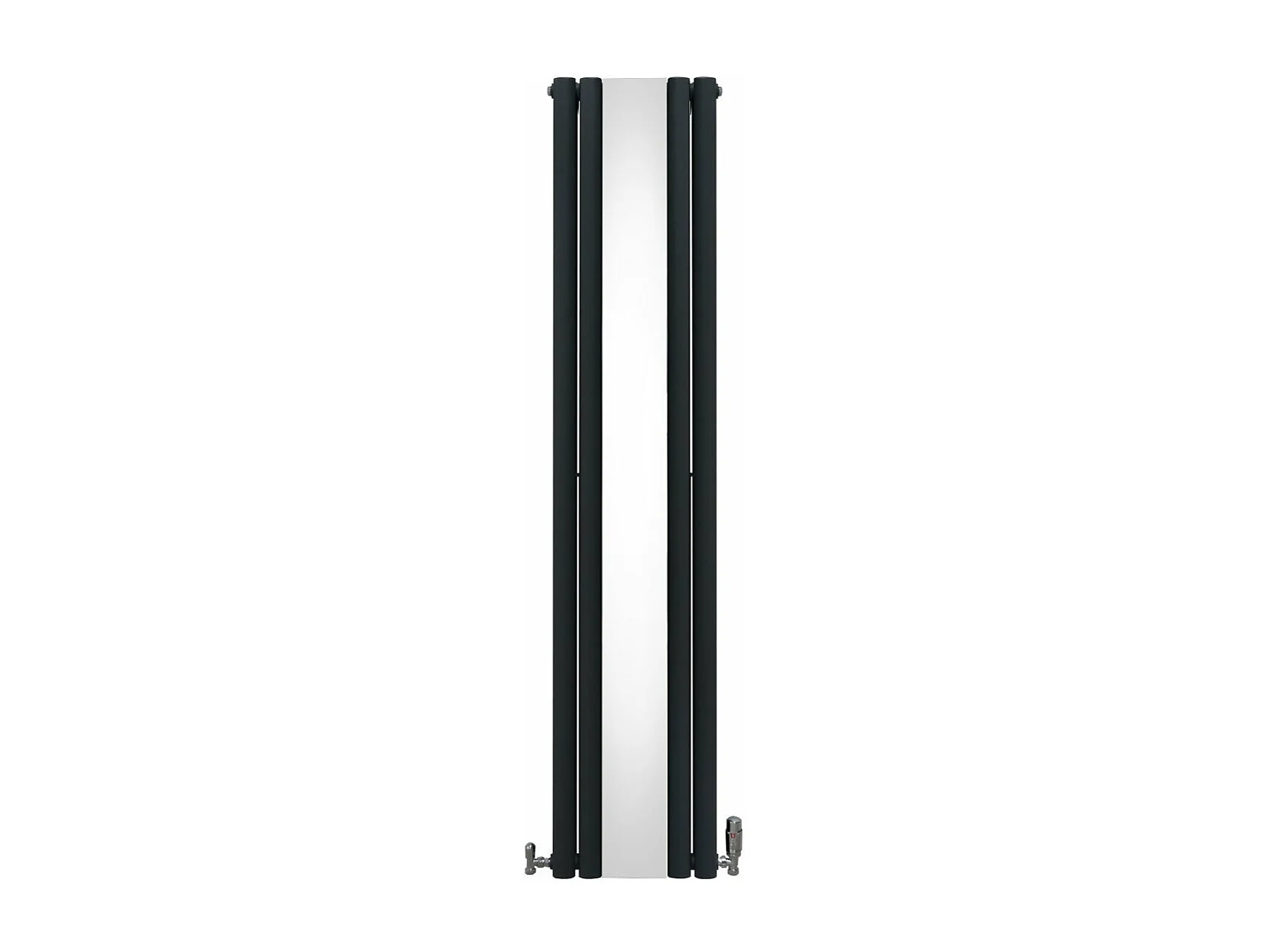 Oval Röhrenheizkörper mit Spiegel & Chrom Thermostatventile - 1800mm x 380mm – Anthrazitgrau