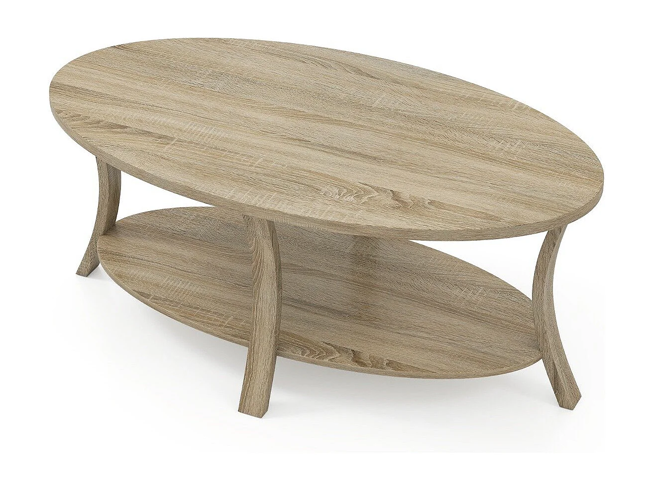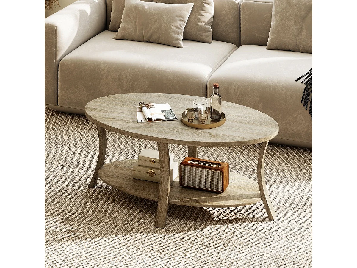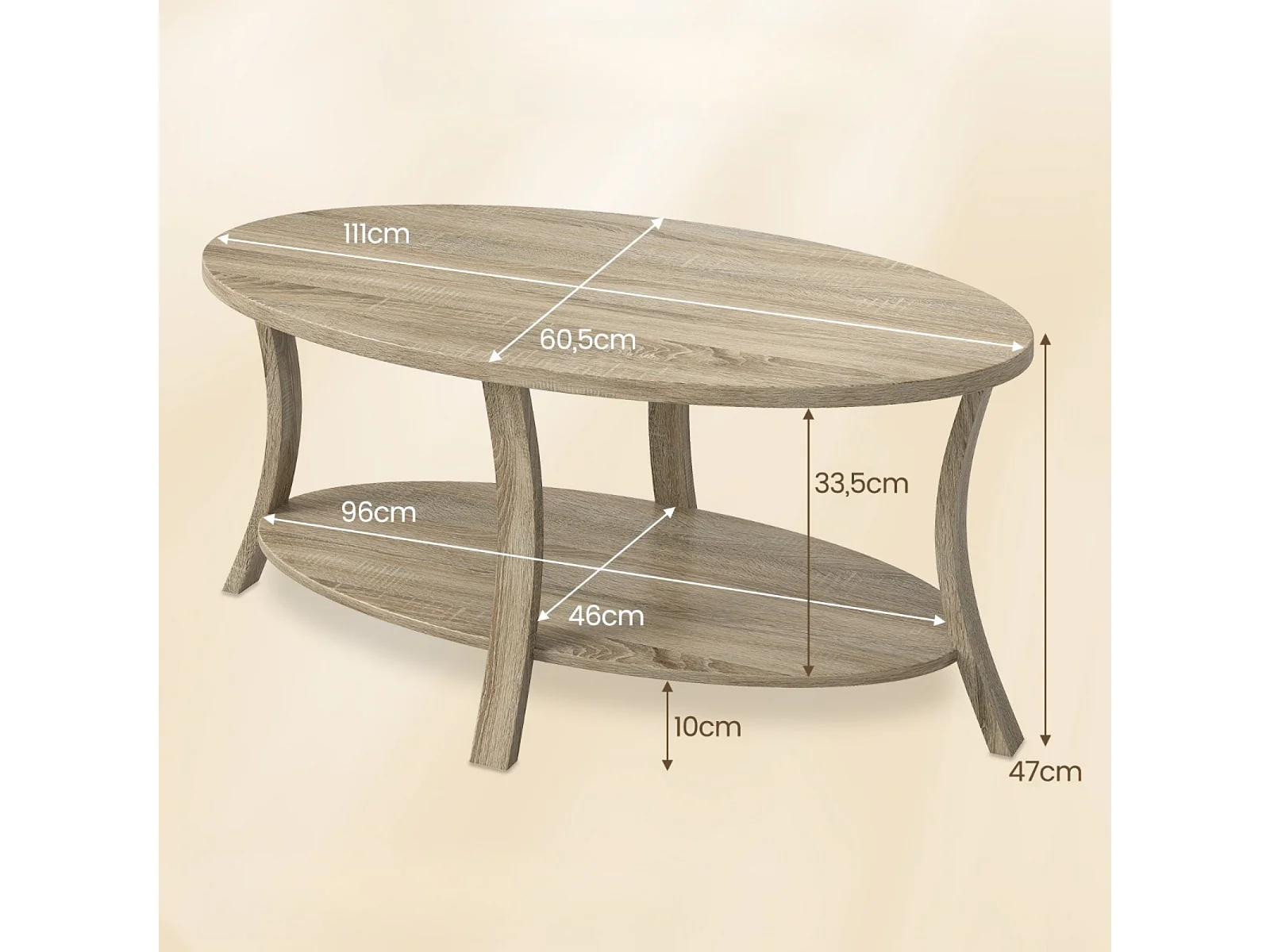 Ovaler Couchtisch mit Ablage Wohnzimmertisch 2-stöckiger Beistelltisch Sofatisch Kaffeetisch Eiche