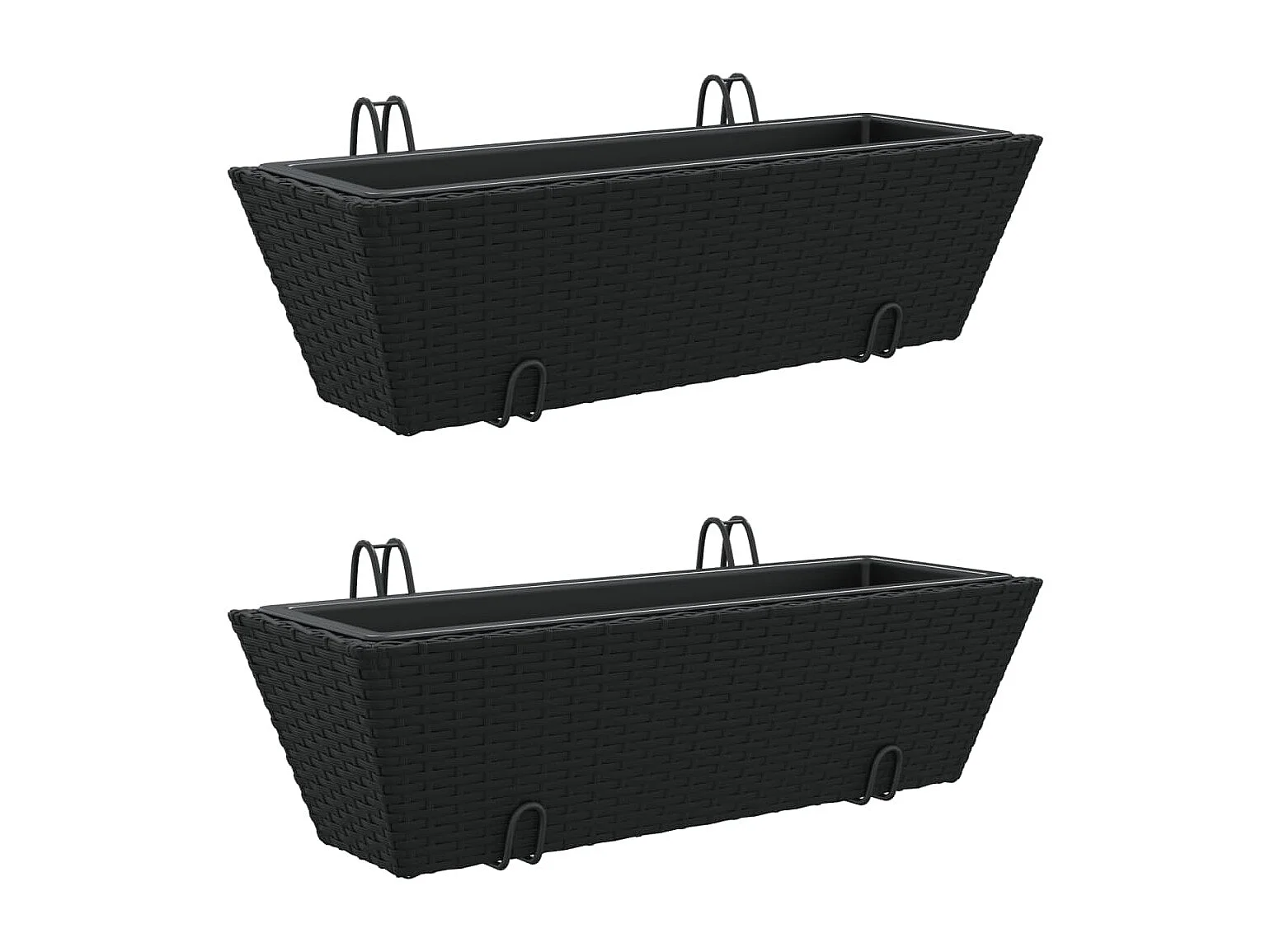 Pflanzkasten mit Haken 2 Stk. Schwarz Poly Rattan