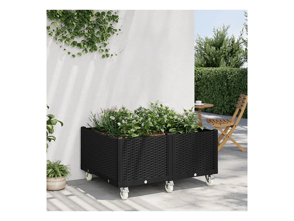 Pflanzkasten mit Rollen Schwarz 100x80x54 cm PP