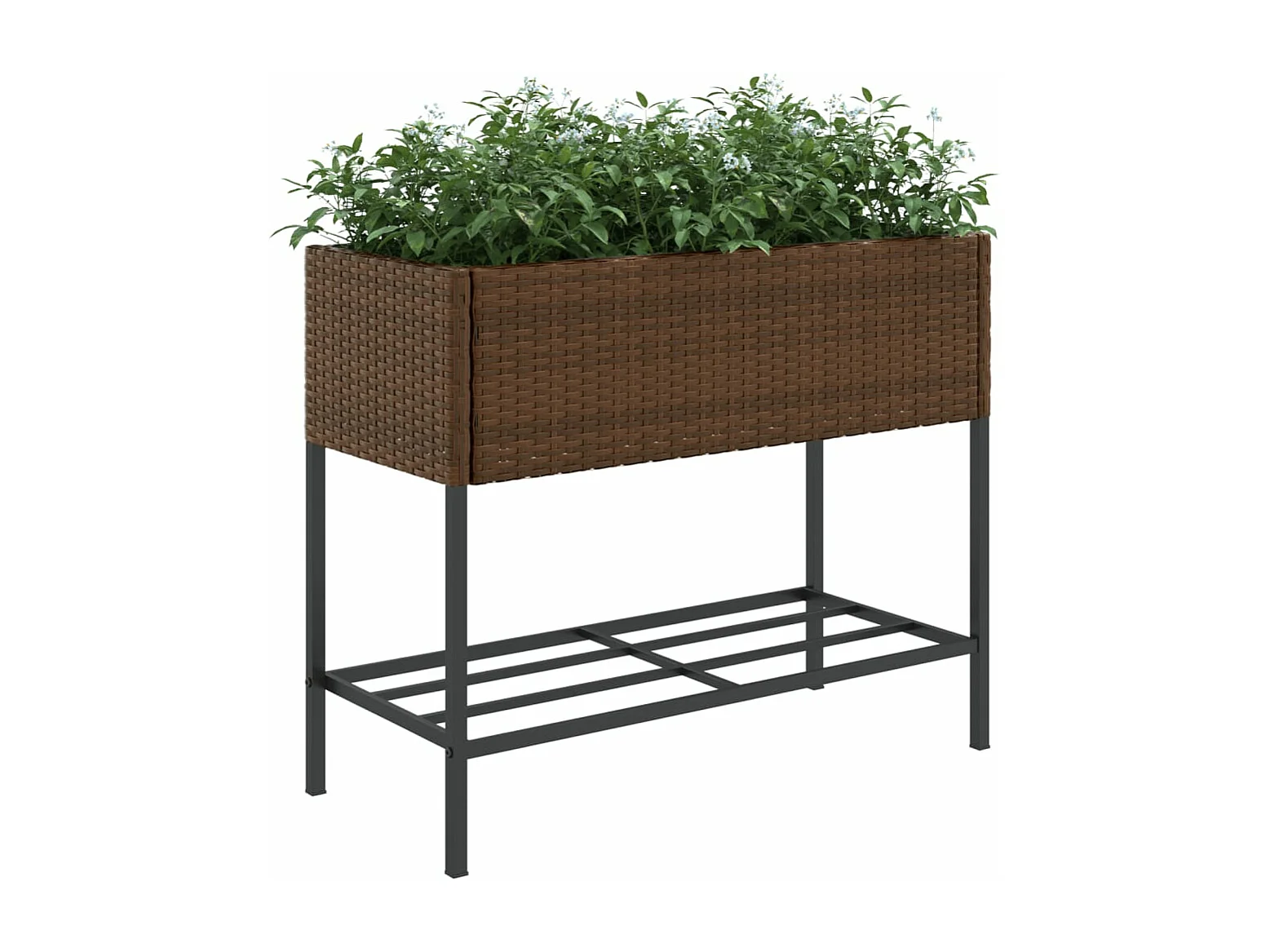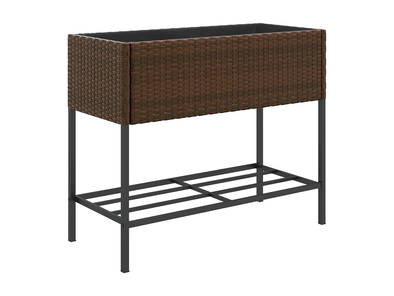 Pflanzkübel mit Ablage Braun Poly Rattan