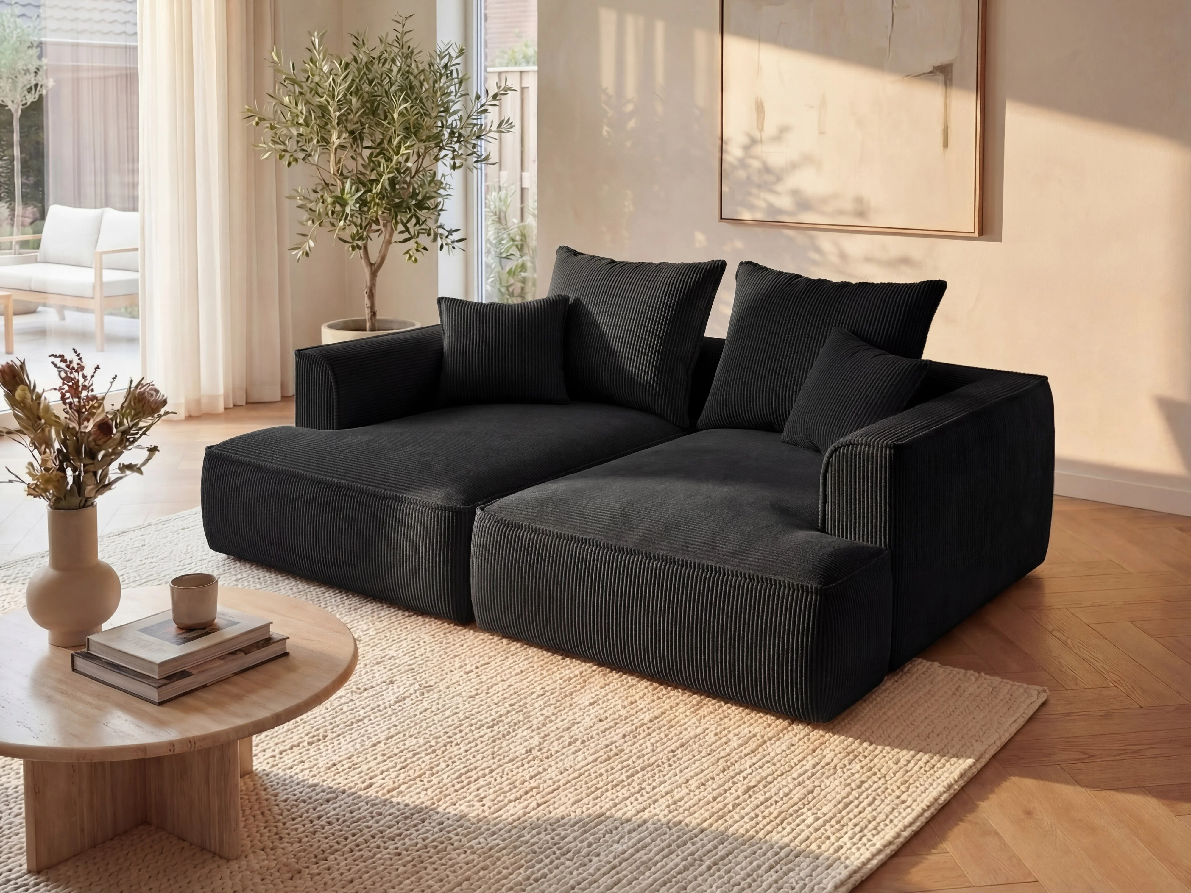 Sofa 3-Sitzer - tiefe Komfortsitzfläche - Cord - Schwarz - PINETA