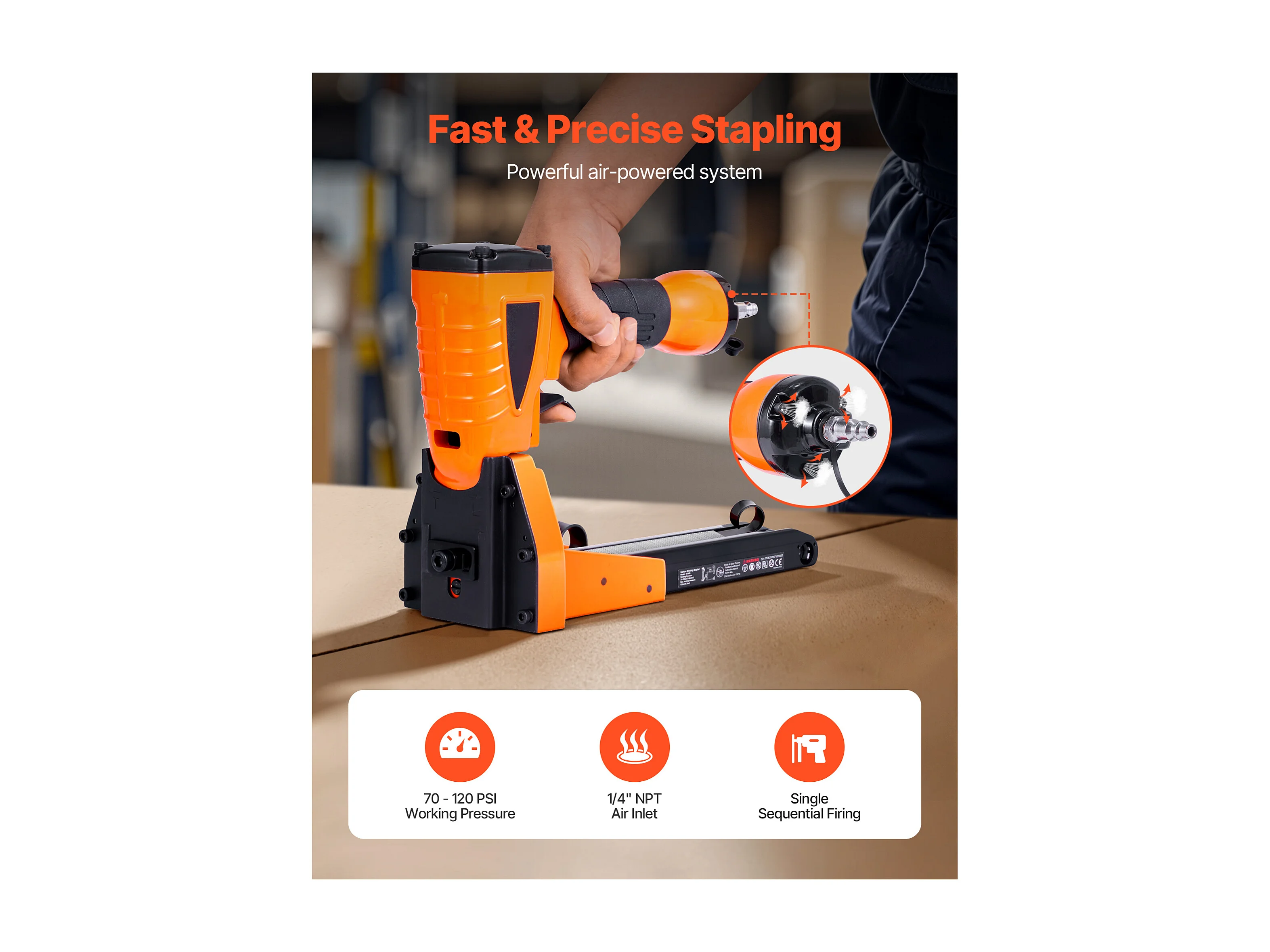 Pneumatischer Tacker SucceBuy für Kartonschließung, Kaliber 13, Kompatibel mit Klammern Nicht Enthalten von Krone 3.48 cm, von Länge 1.6 und 1.9 cm