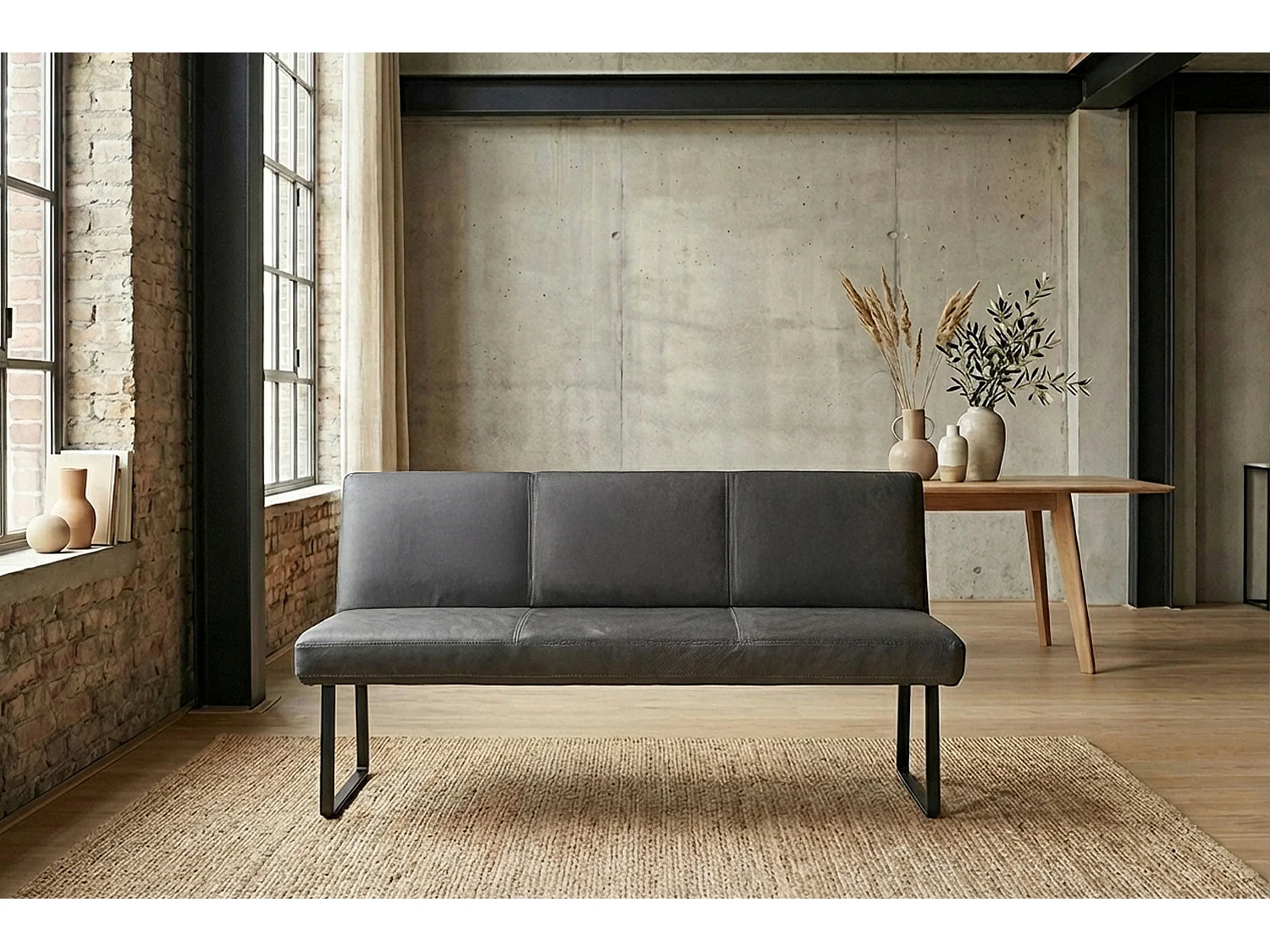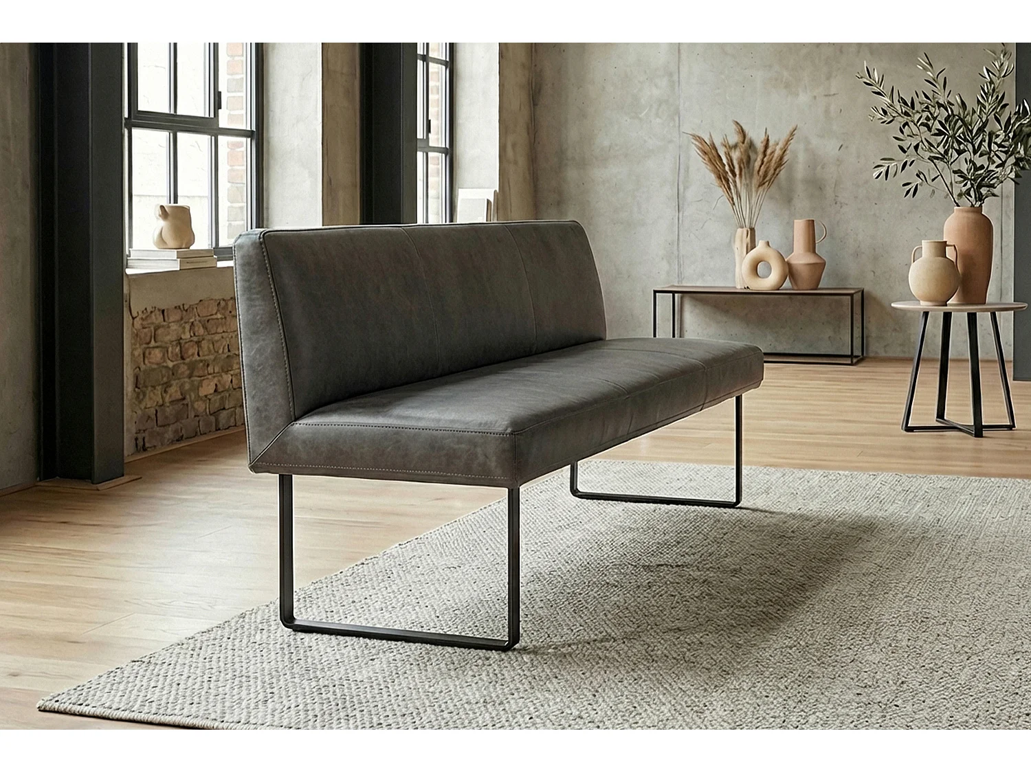 Polsterbank - Anthrazit Leder - ELEEN
