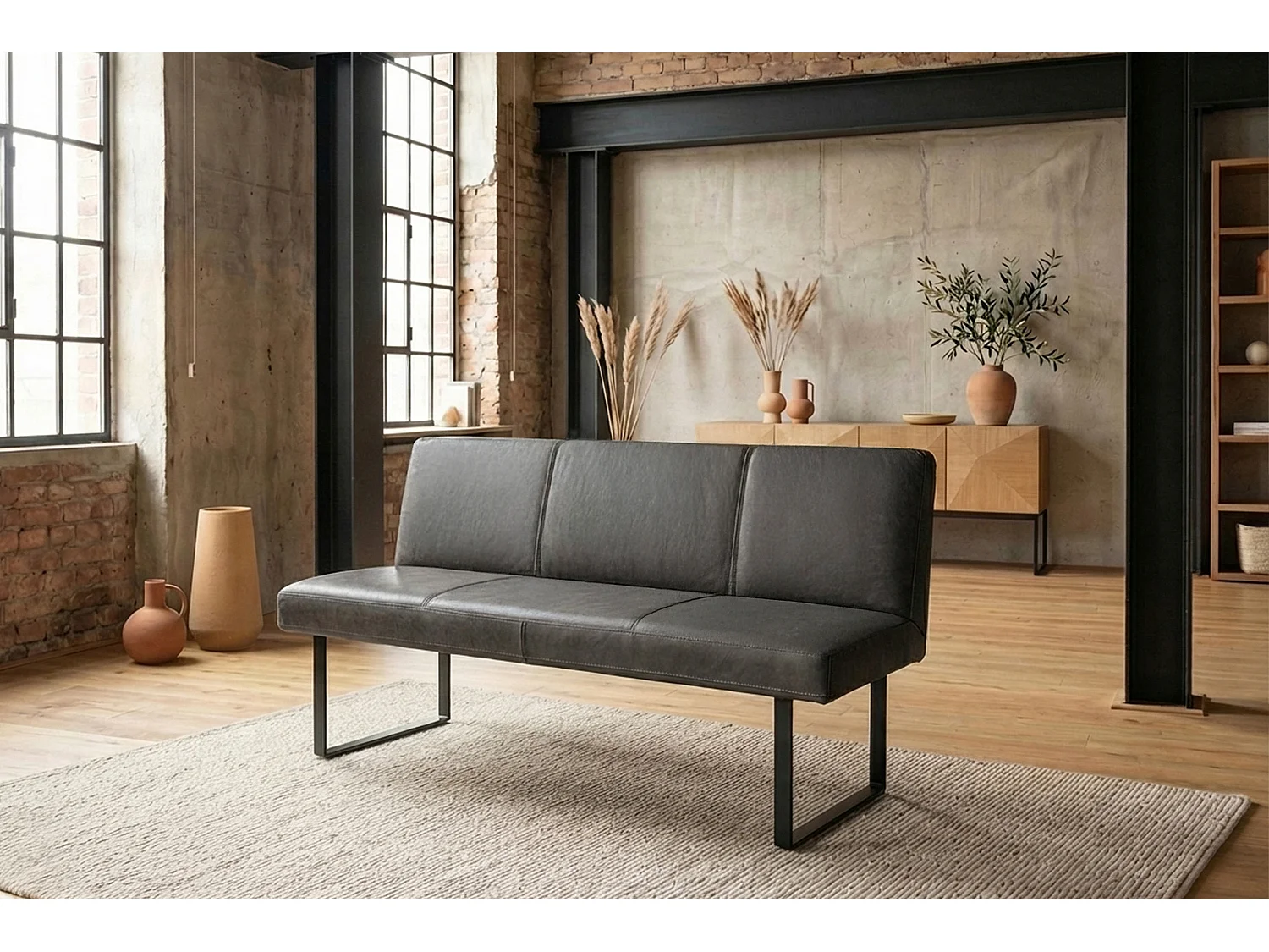 Polsterbank - Anthrazit Leder - ELEEN