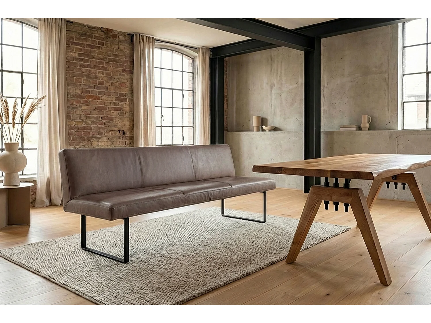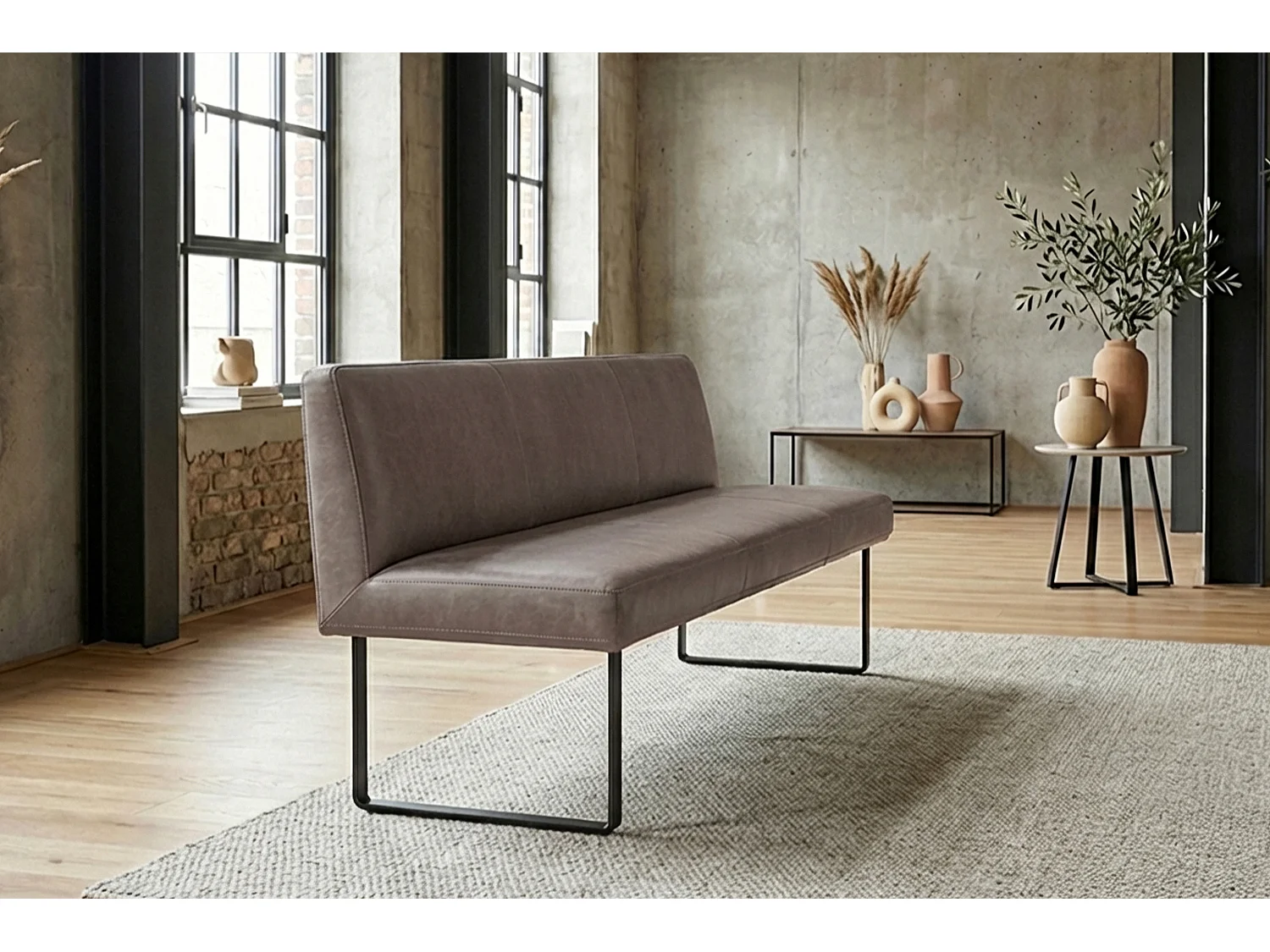 Polsterbank - Dunkelbraun Leder - ELEEN