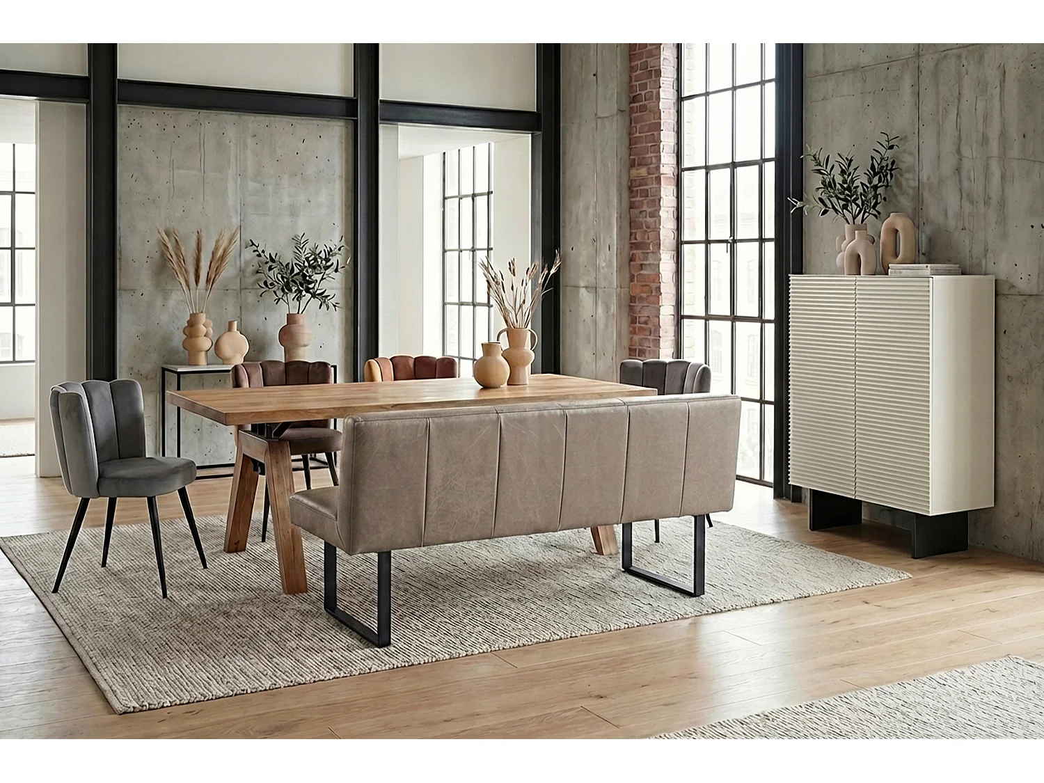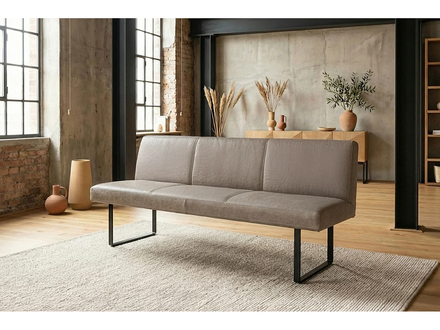 Polsterbank - Grau Leder - ELEEN