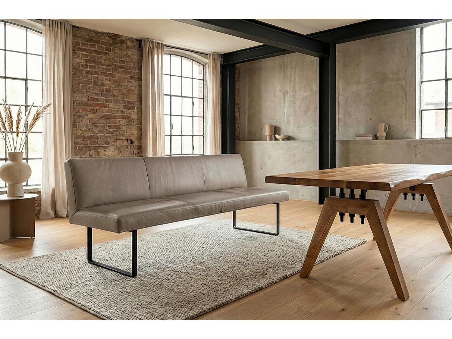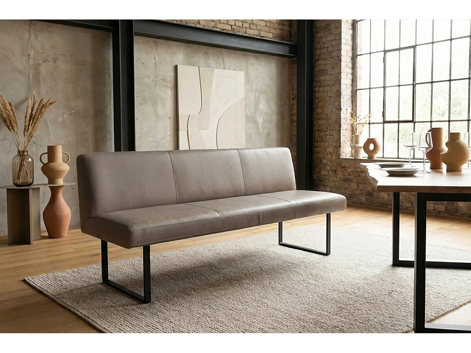 Polsterbank - Grau Leder - ELEEN