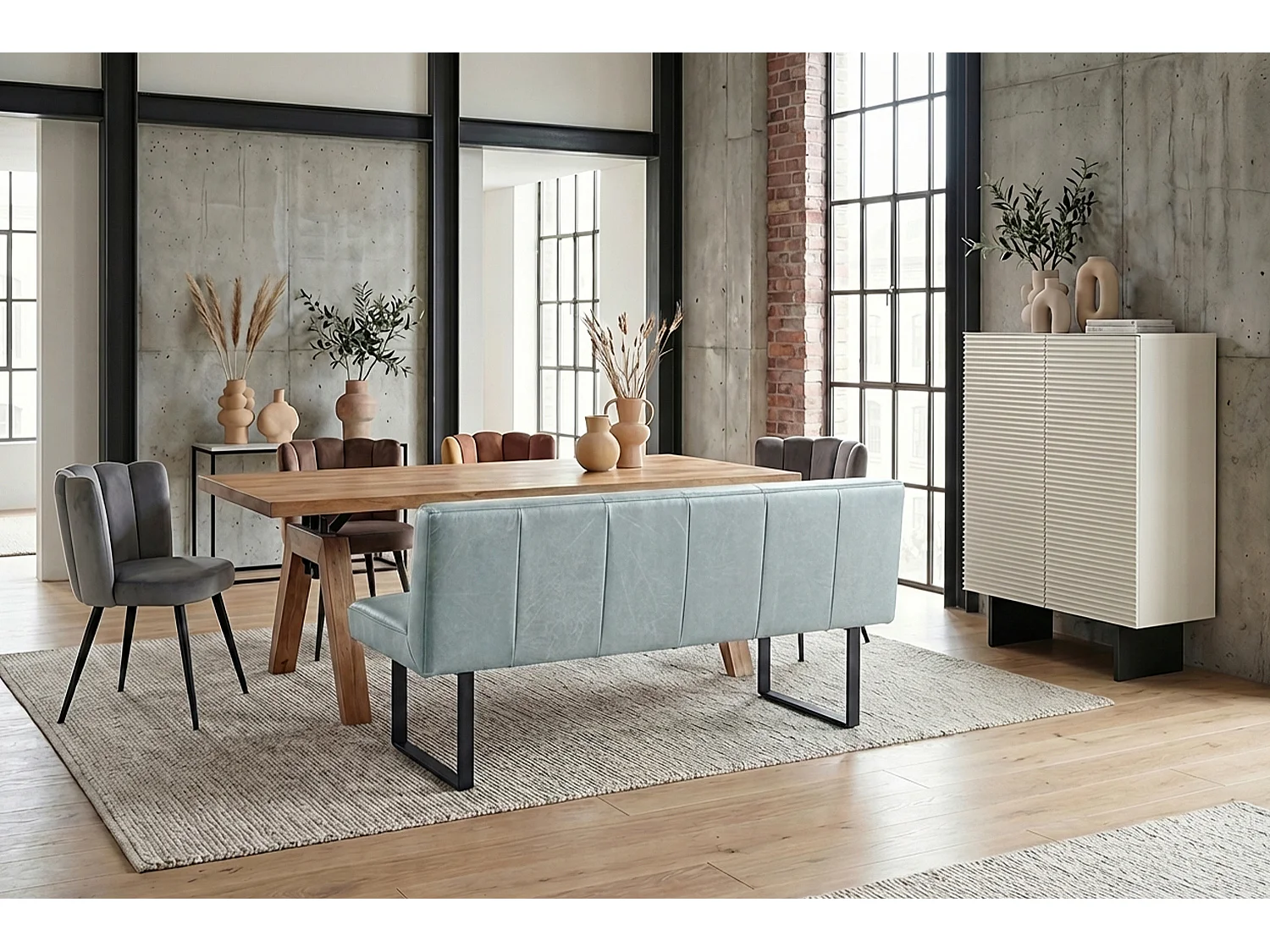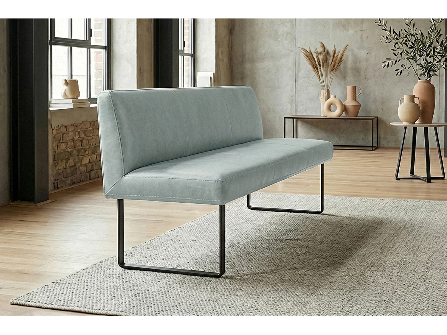 Polsterbank - Hellblau Leder - ELEEN