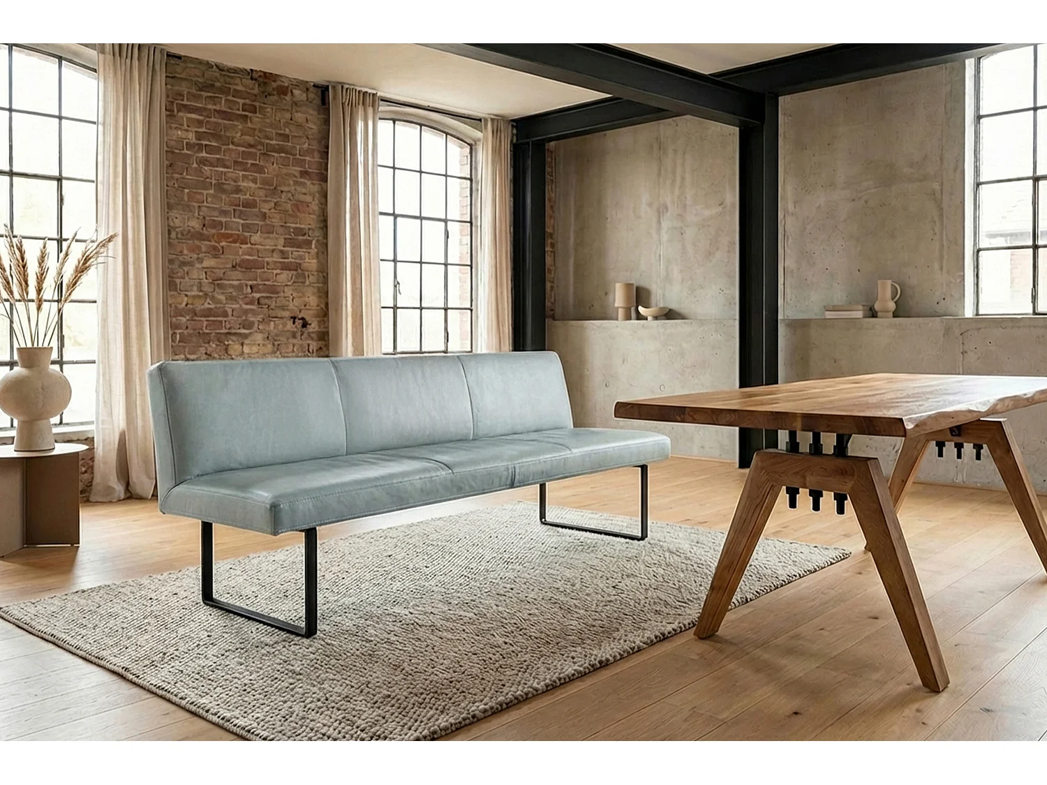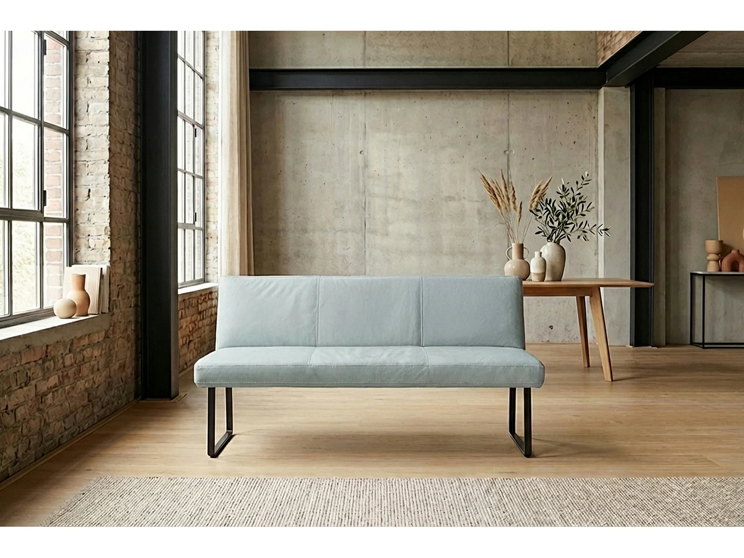 Polsterbank - Hellblau Leder - ELEEN