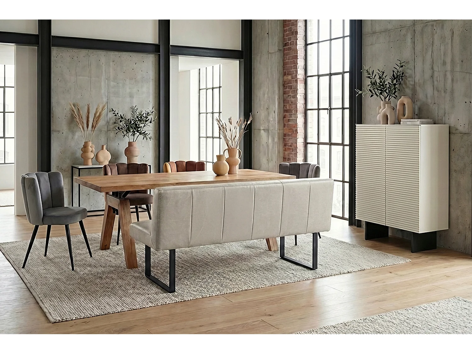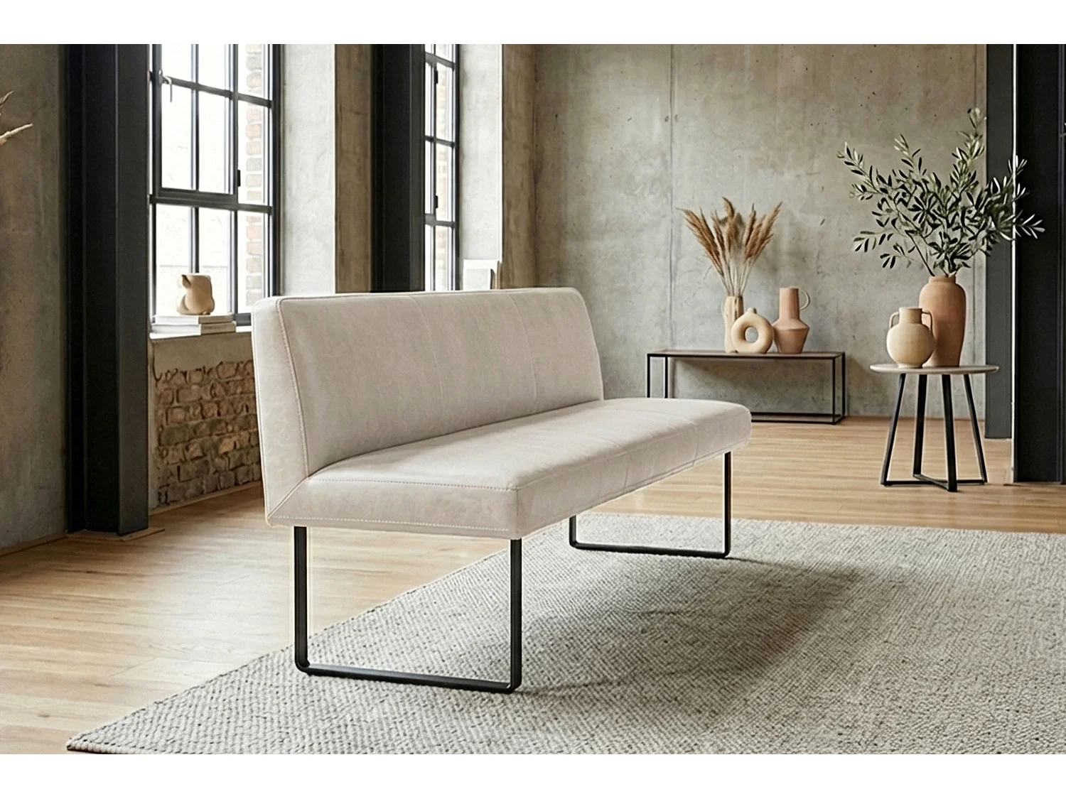 Polsterbank - Hellgrau Leder - ELEEN
