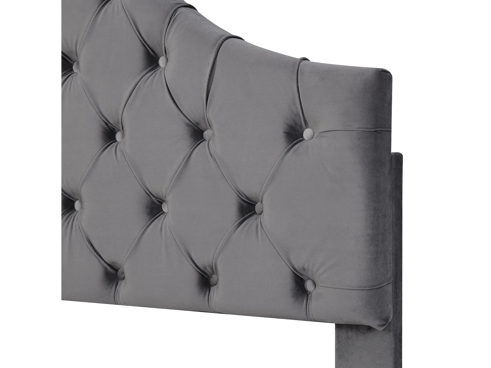 Polsterbett 90x200cm aus Samt mit verstellbarem Kopfteil + Lattenrost – Grau