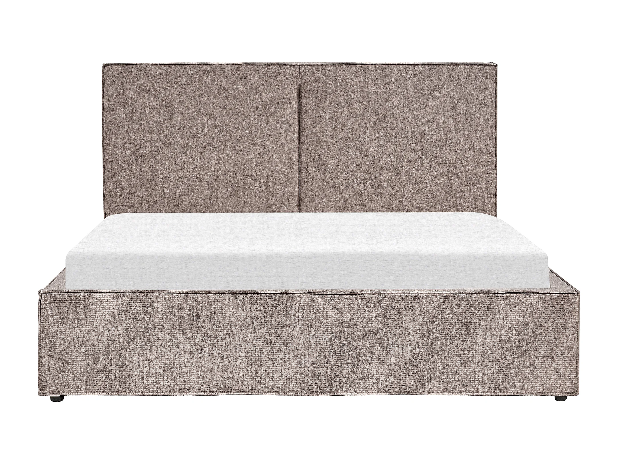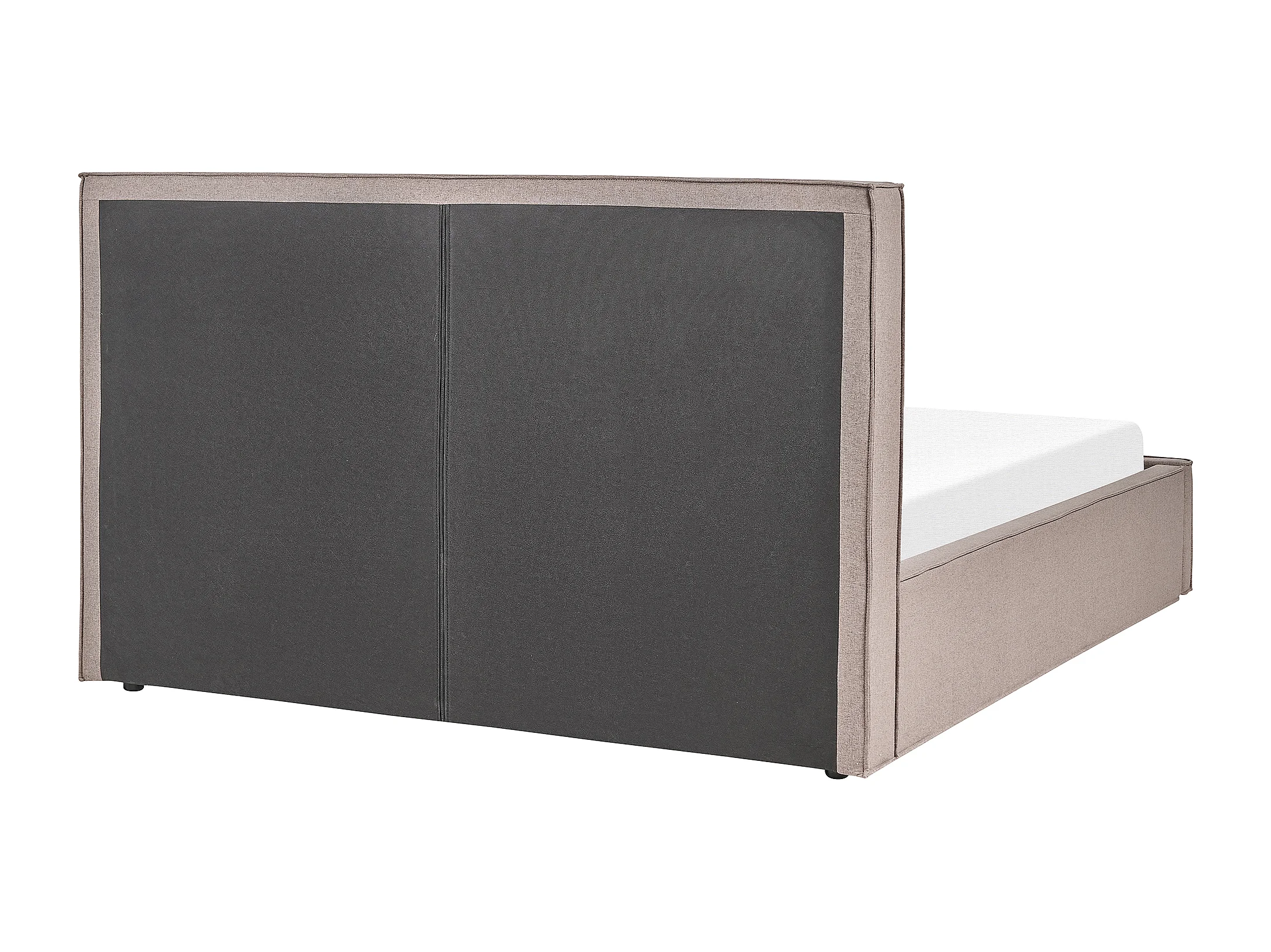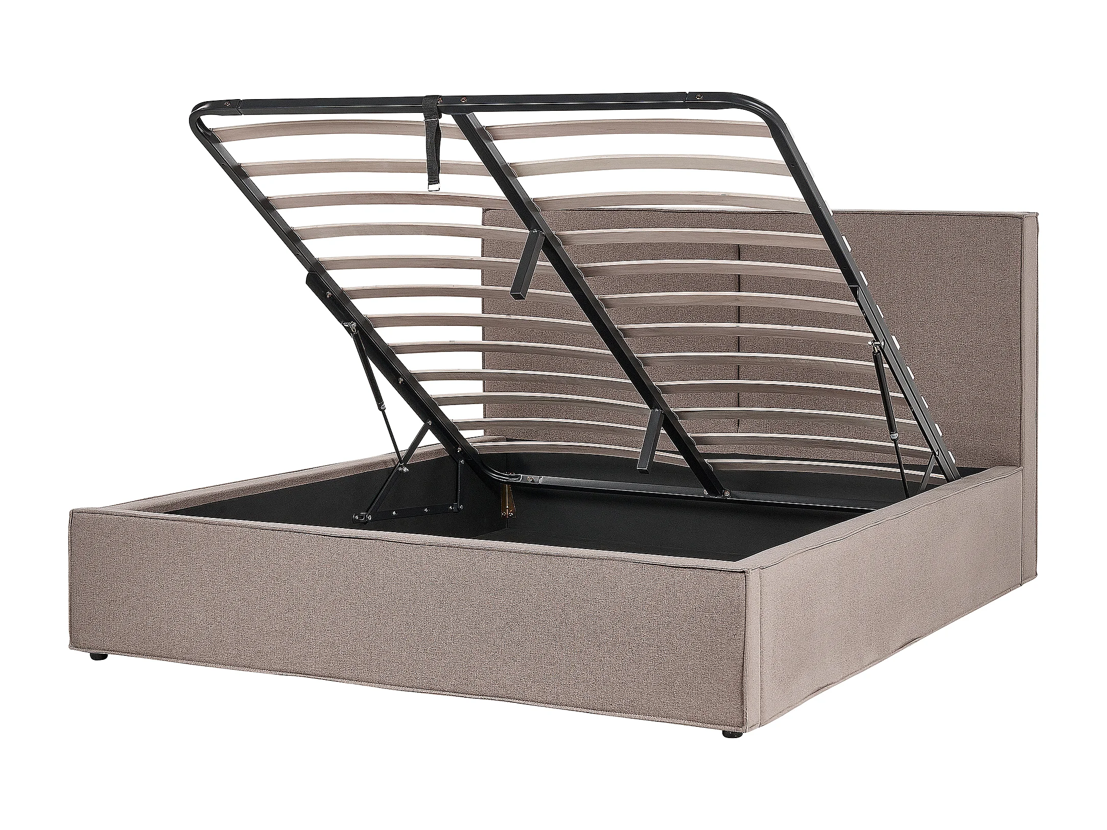 Polsterbett beige taupe hohes Kopfteil Lattenrost 160x200 cm Bettkasten Moissac