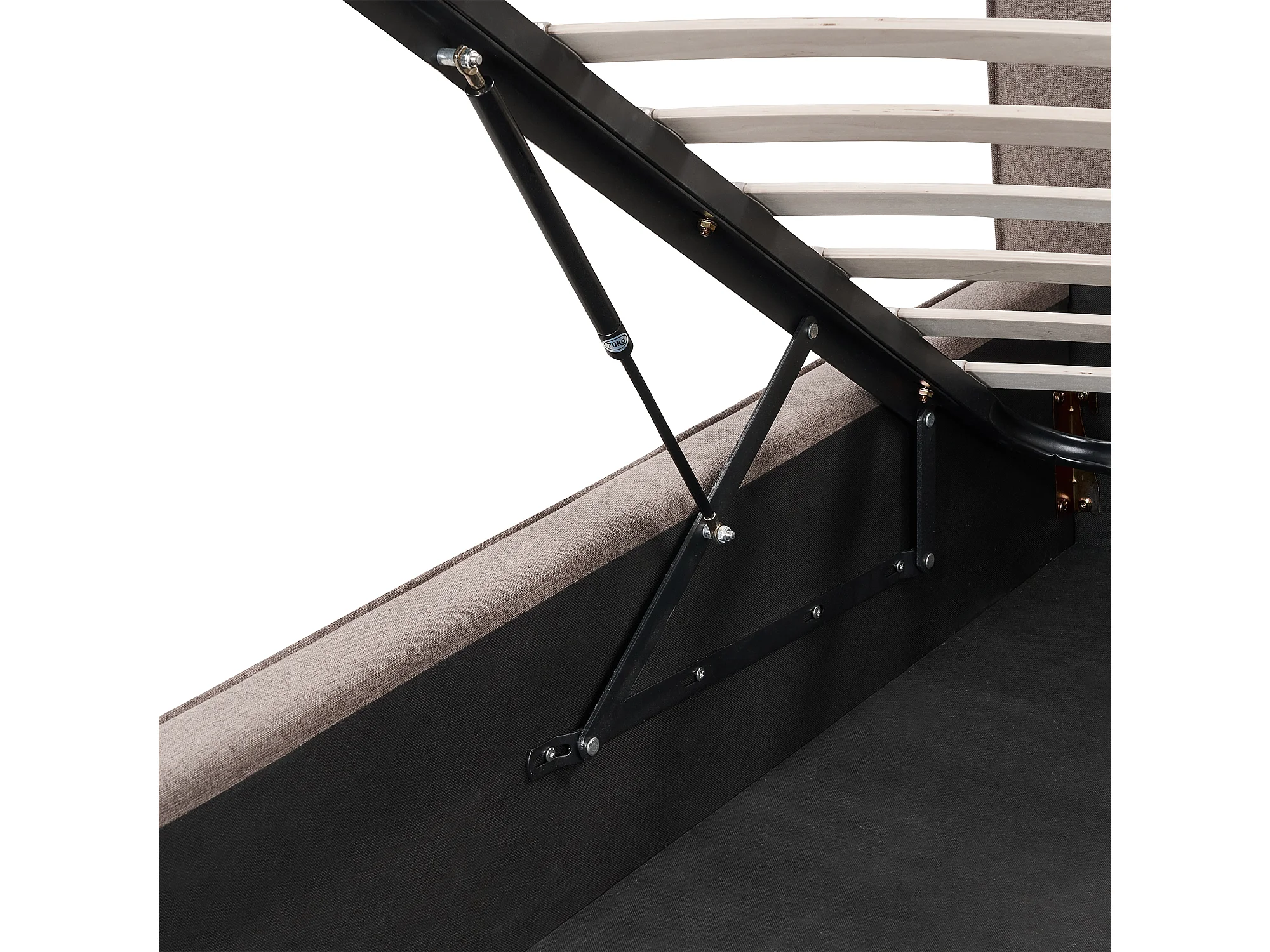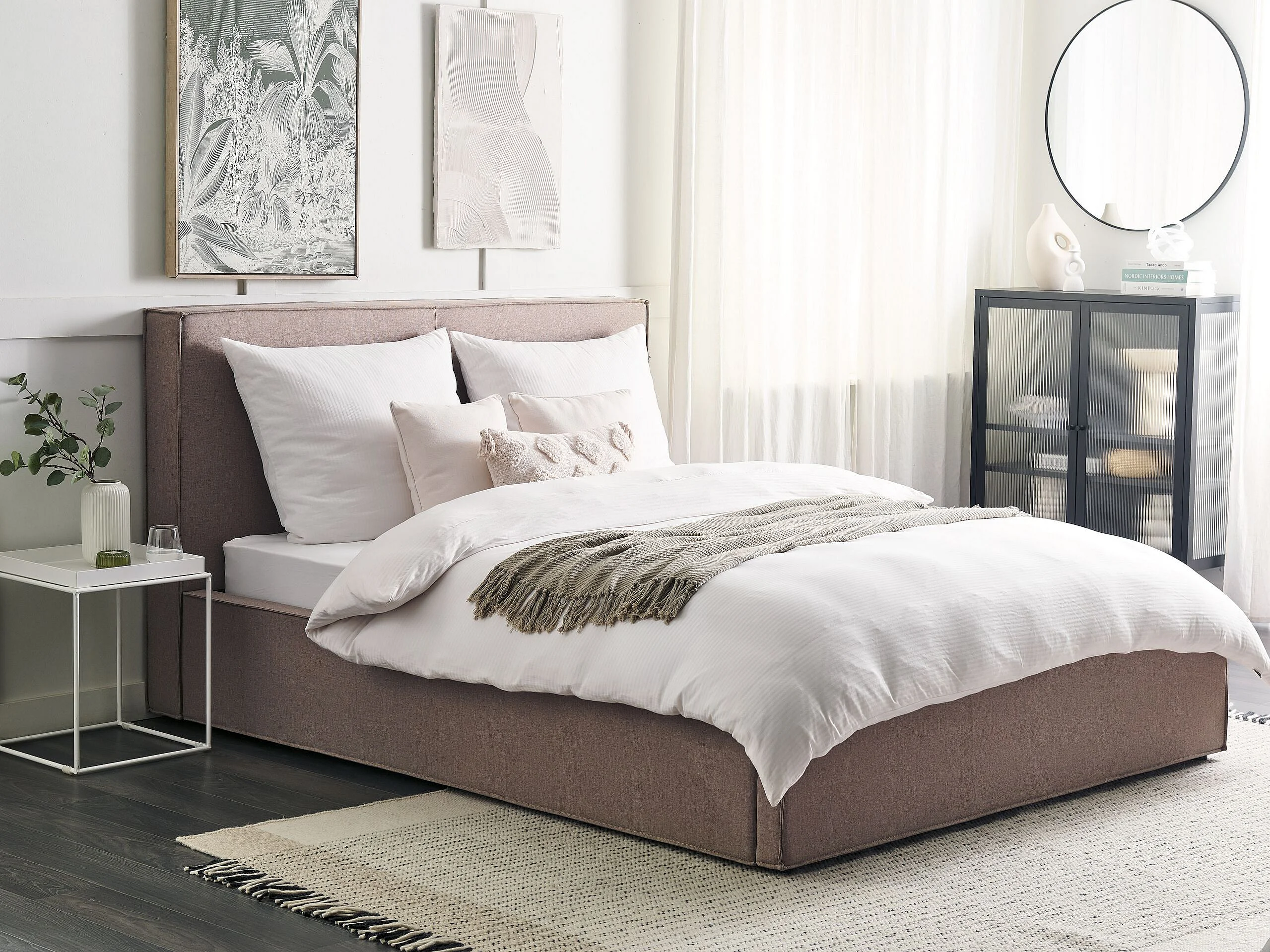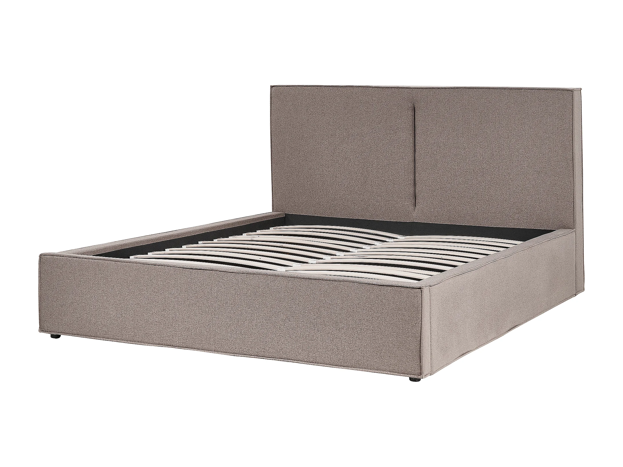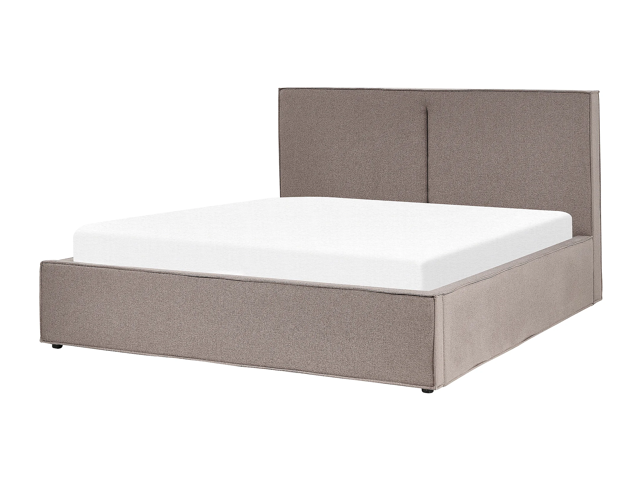 Polsterbett beige taupe hohes Kopfteil Lattenrost 160x200 cm Bettkasten Moissac