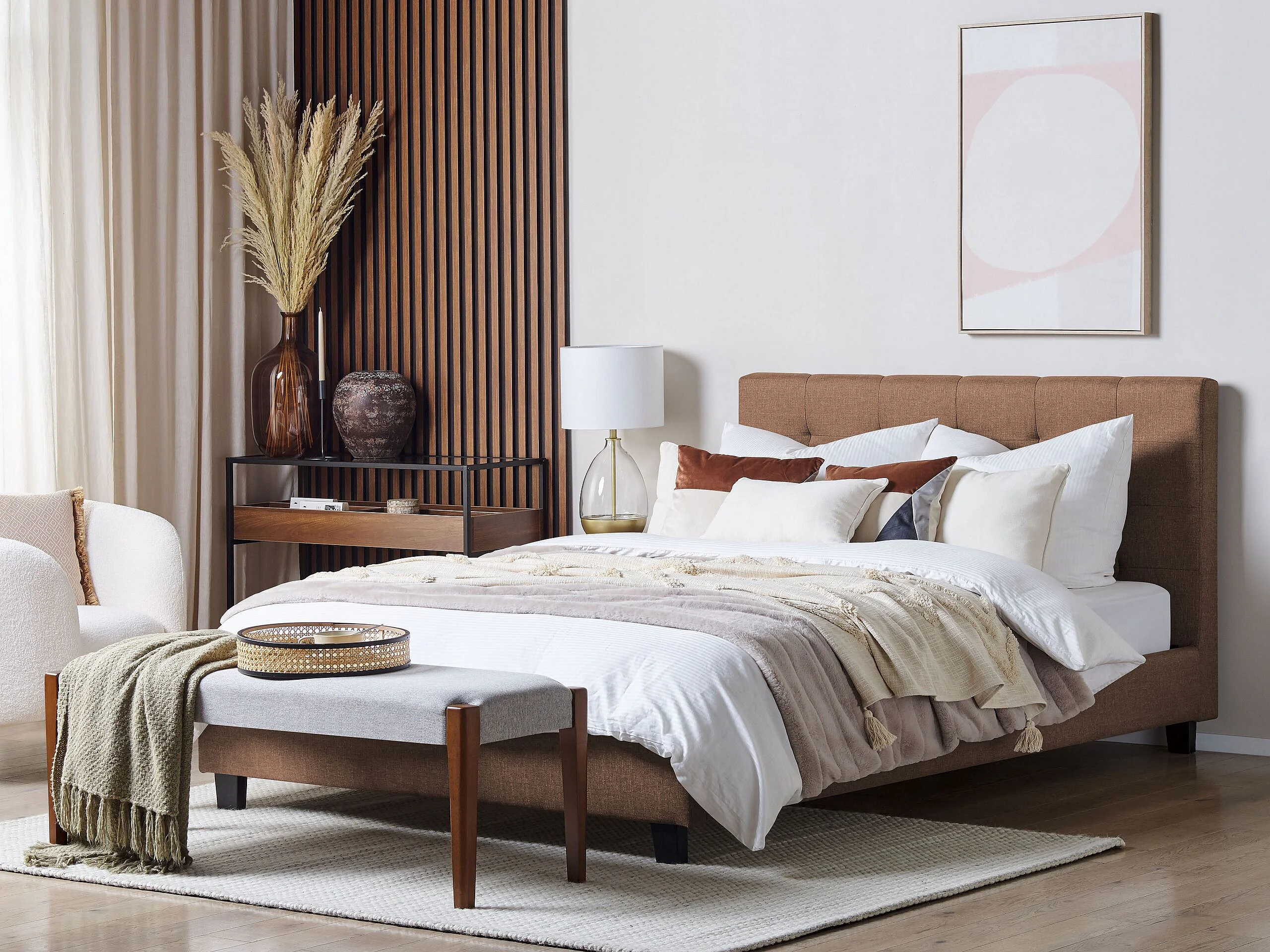 Bett Polsterbezug in Braun mit Lattenrost 180 x 200 cm La Rochelle