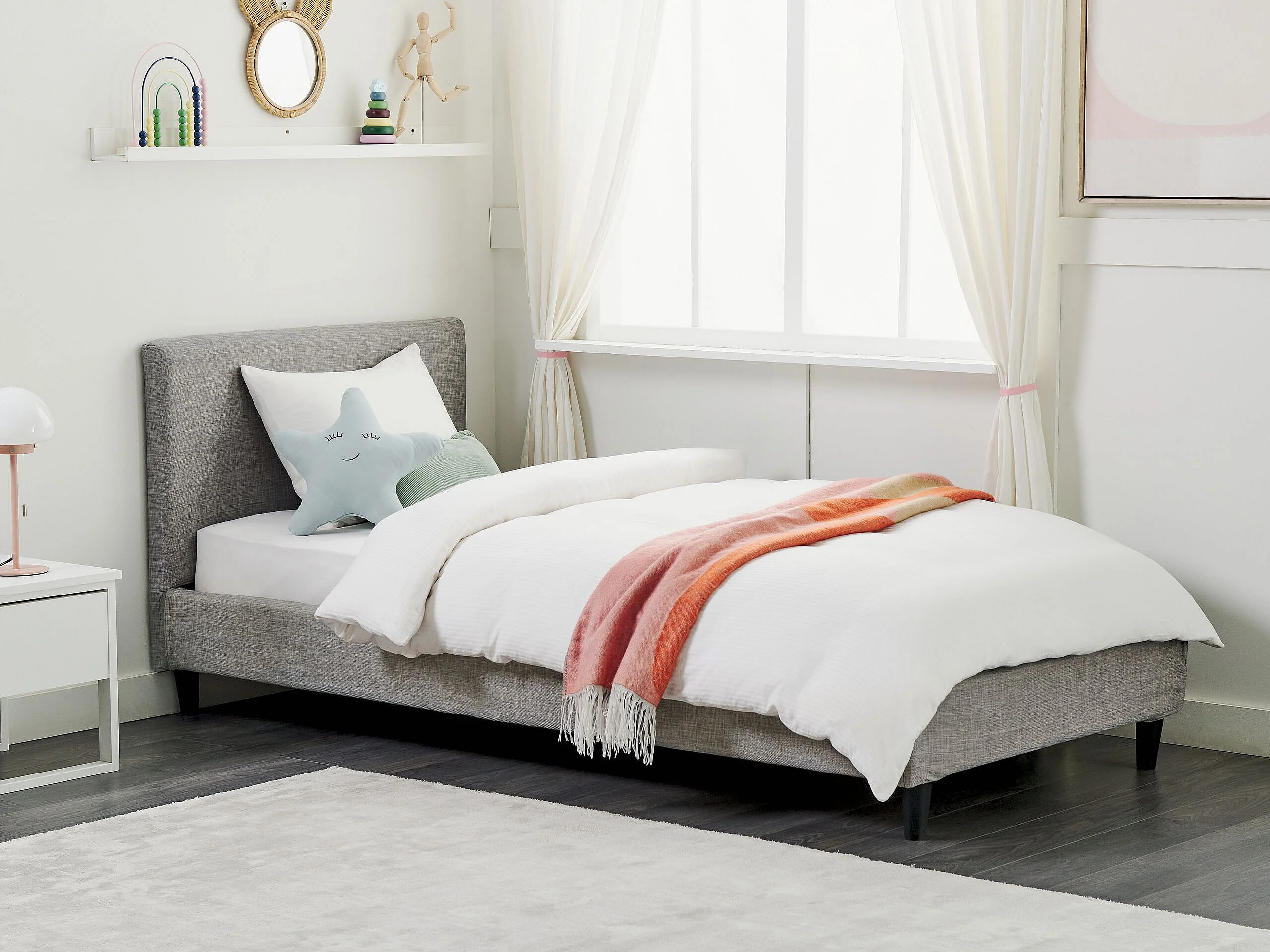 Modernes Einzelbett abnehmbarer Bettrahmenbezug Bezug Lattenrost 90 x 200 cm Stoff grau Leinenoptik Fitou