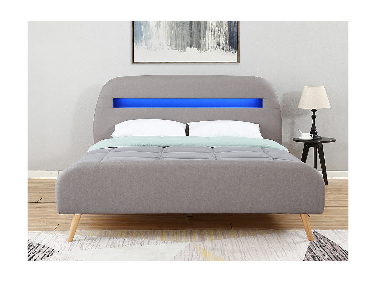 Polsterbett mit LED-Beleuchtung AMBROISE - 140 x 200 cm - Grau