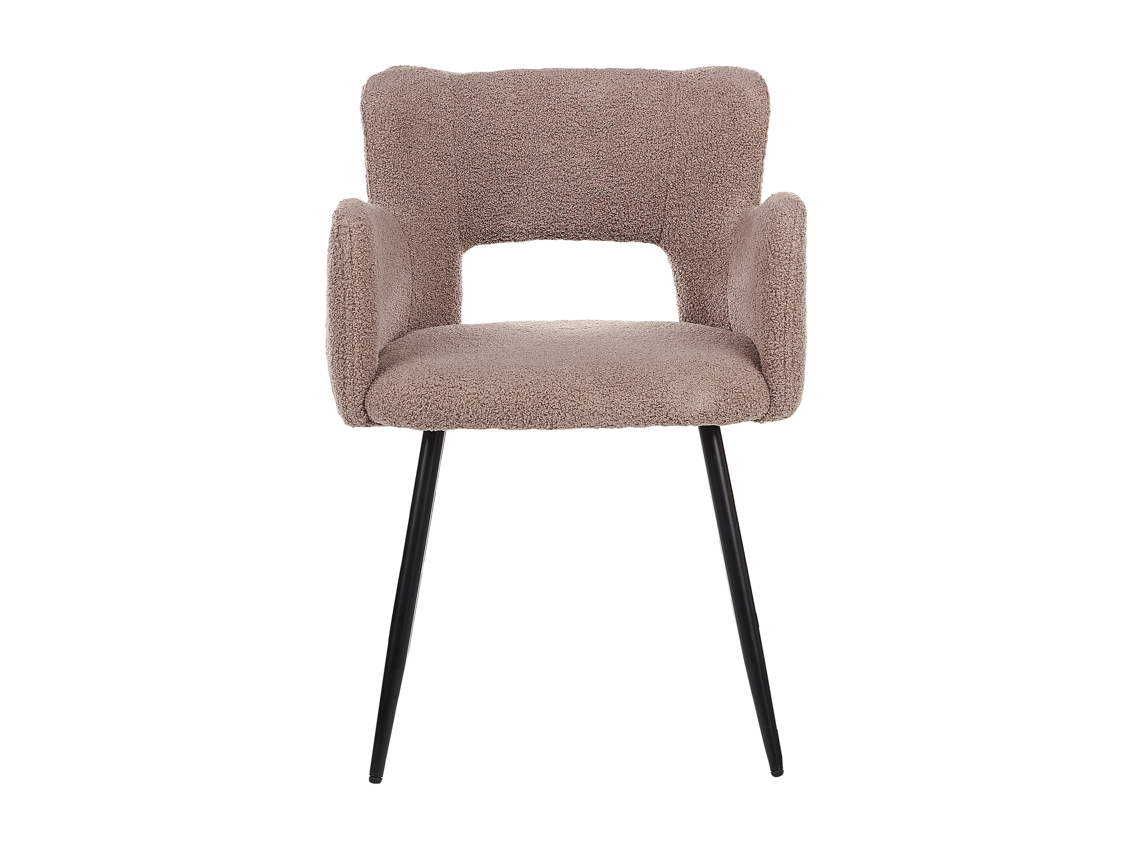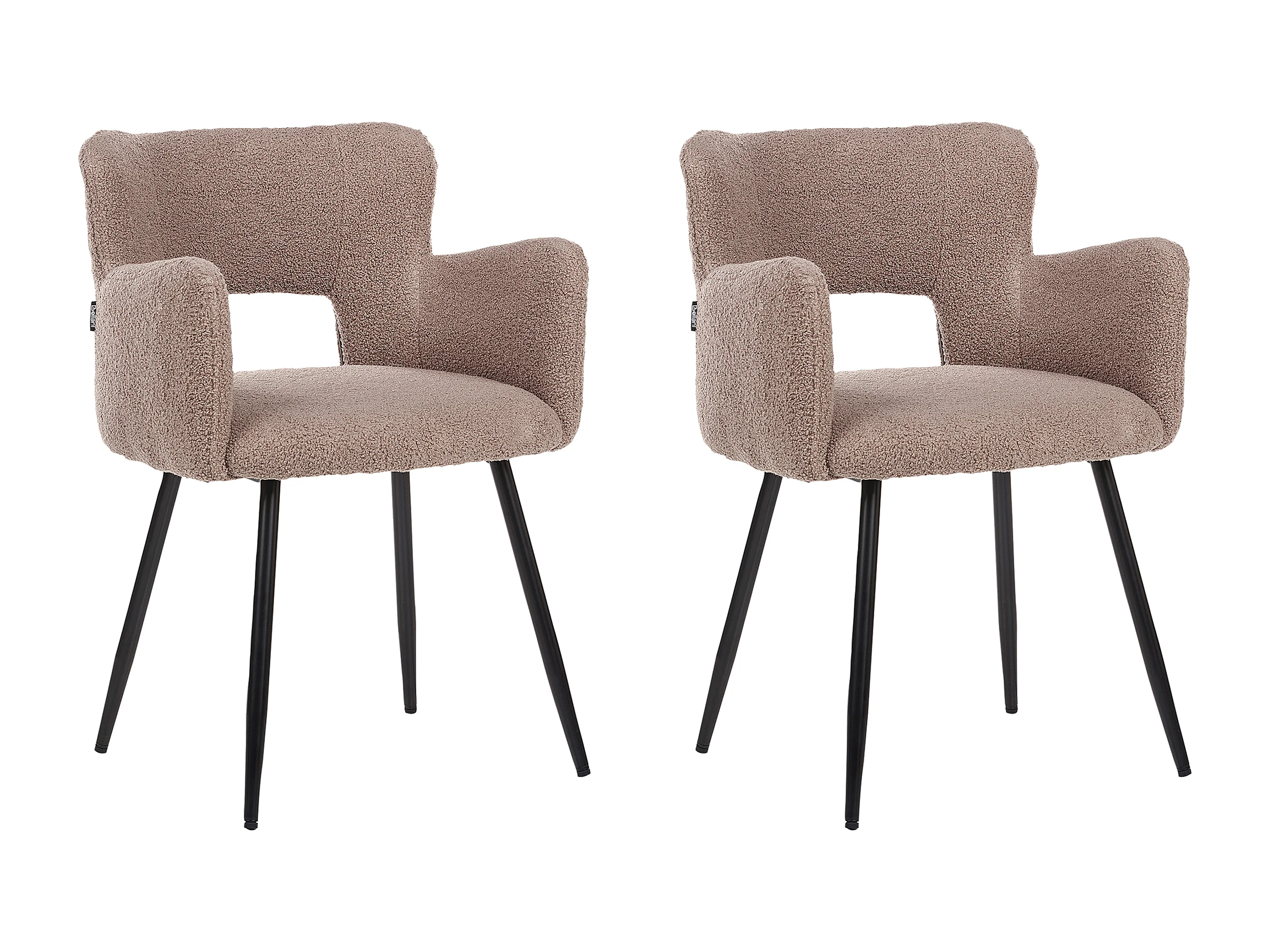 Polsterstuhl 2er Set Bouclé braun mit Armlehnen schwarze Metallbeine Sanilac
