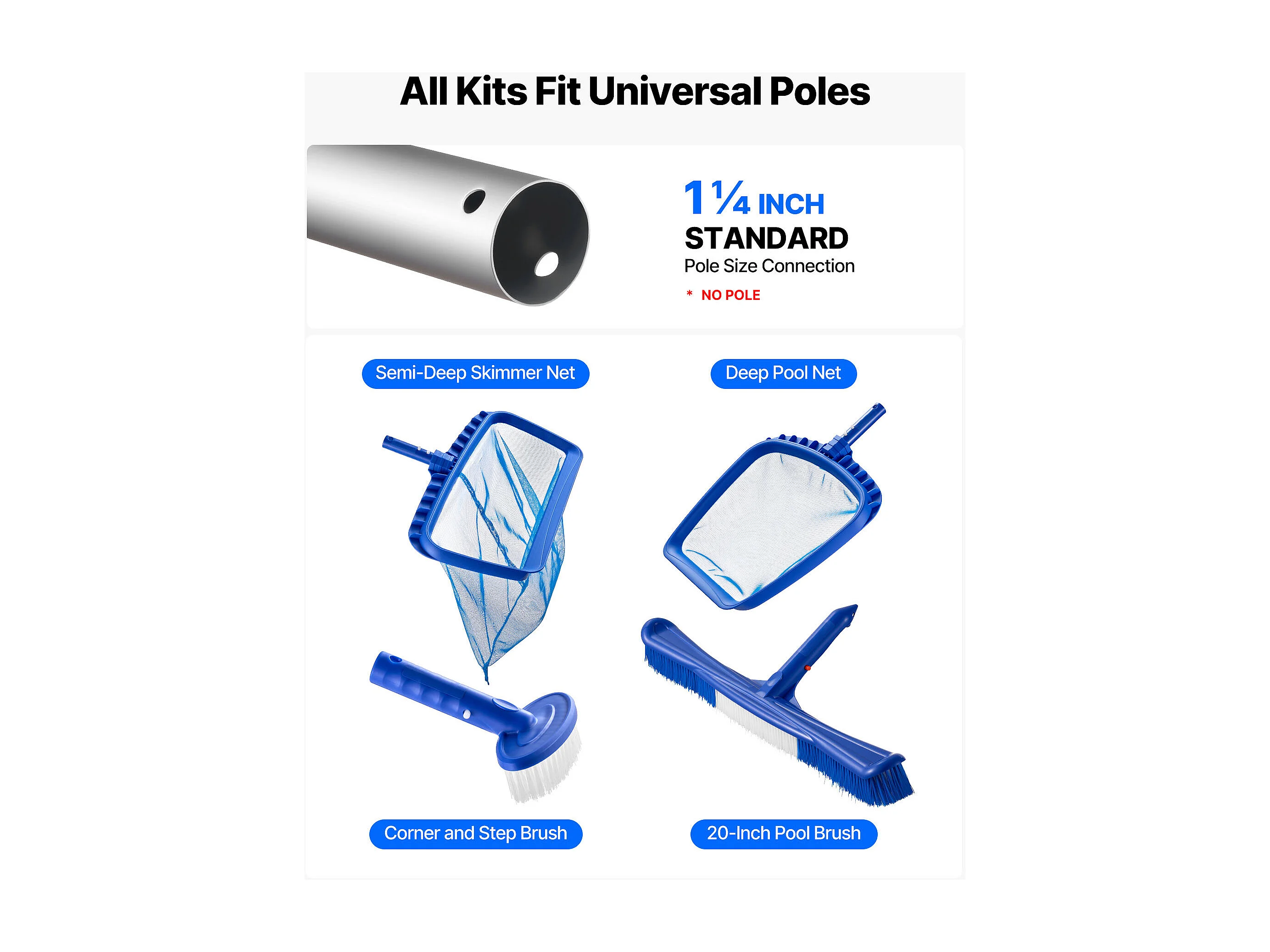 Pool-Reinigungsset SucceBuy, 2 Abnehmbare Bürstenköpfe 51 cm/14 cm und 2 Poolkescher mit Feinmasche, 4-in-1 Reinigungswerkzeug-Set