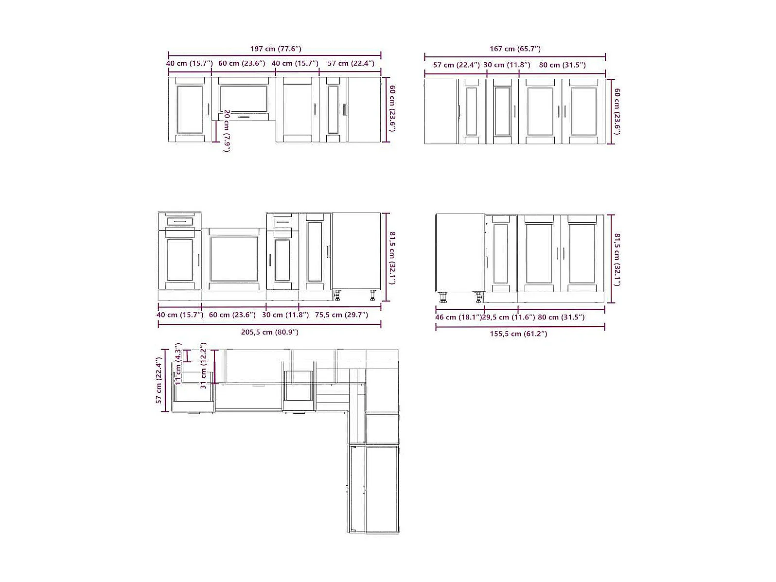 Porto 11-teiliges Küchenschrank-Set aus Holzwerkstoff