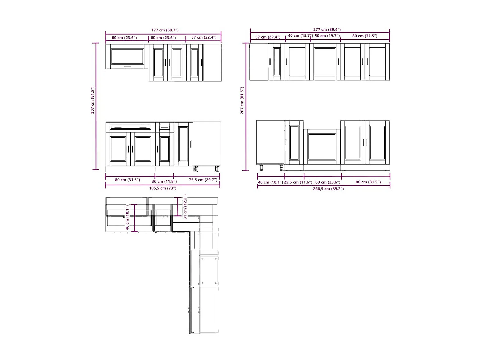 Porto 11-teiliges Küchenschrank-Set aus Holzwerkstoff