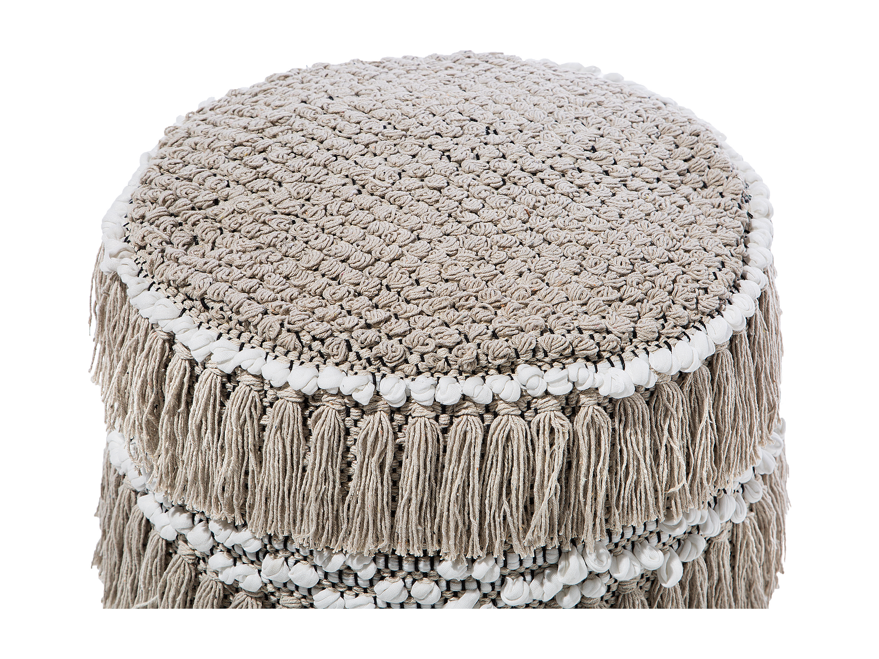 Boho gestrickt Runde Pouf Ottomane Hocker aus Baumwolle mit EPS Füllung 40 x 40 cm Beige Arpatu