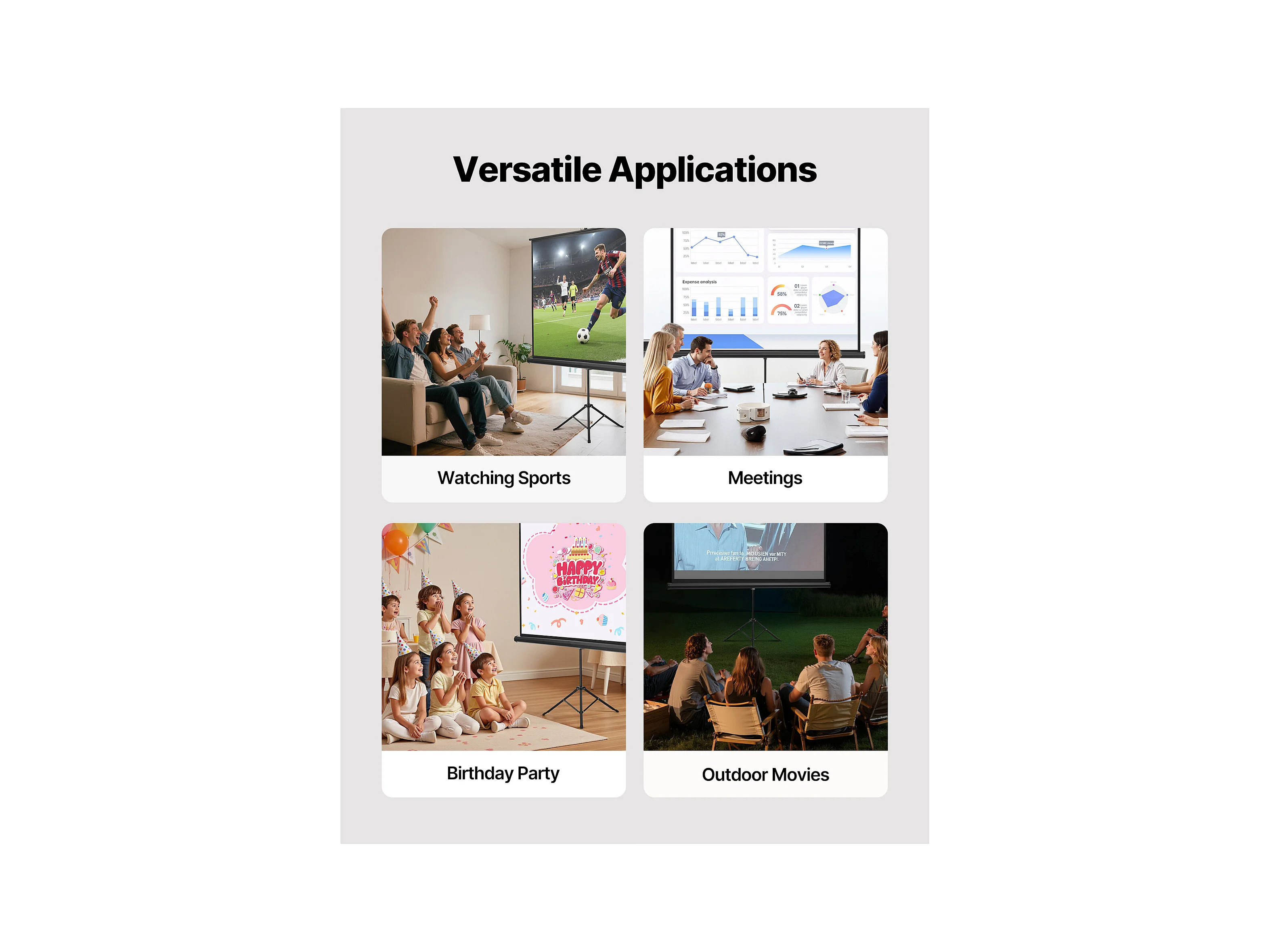 Projektionsleinwand SucceBuy mit Stativ 178x178 cm, Tragbare und Knitterfreie Projektionsleinwand, Großer Betrachtungswinkel 160°, 1:1 4K HD