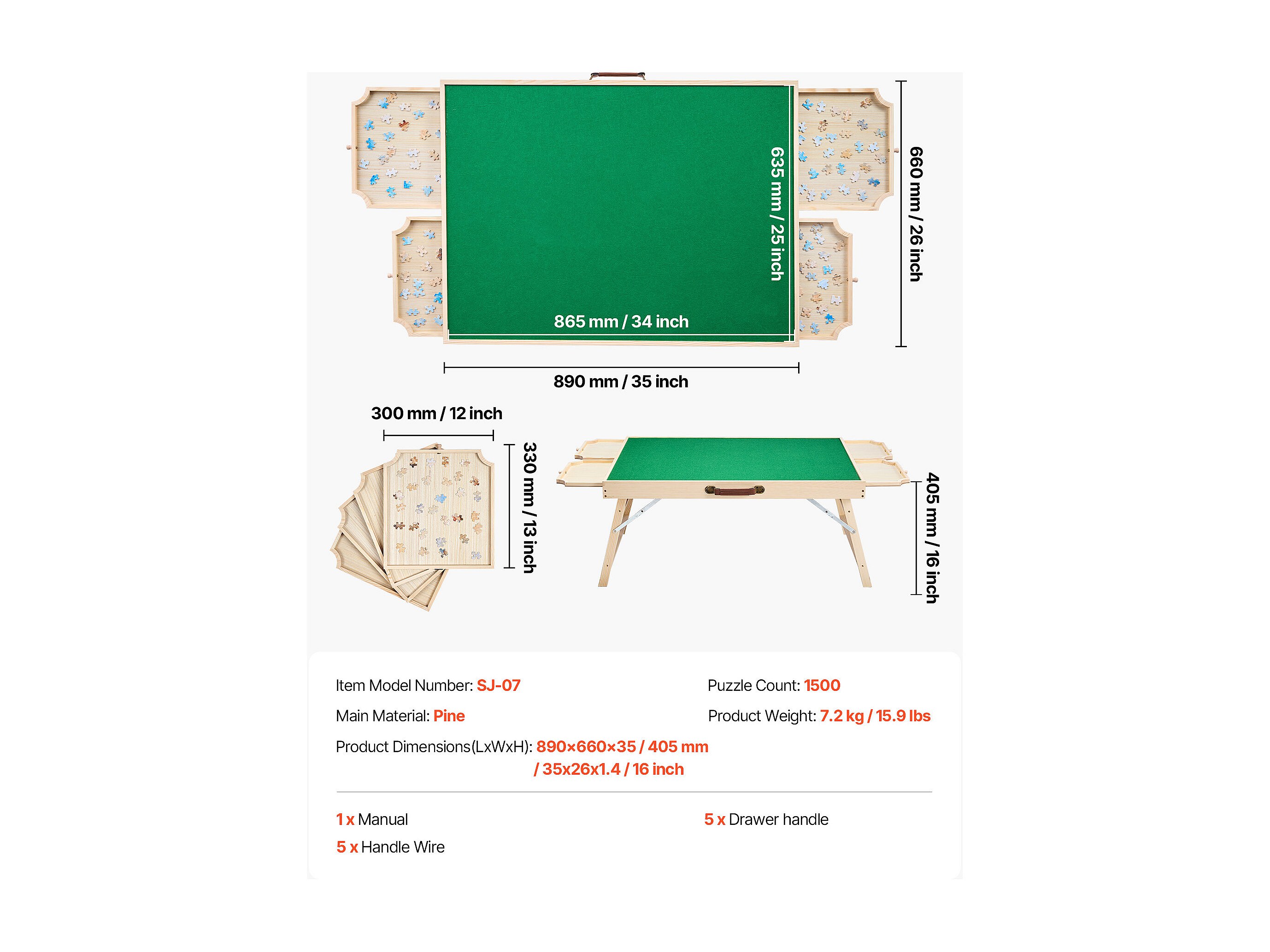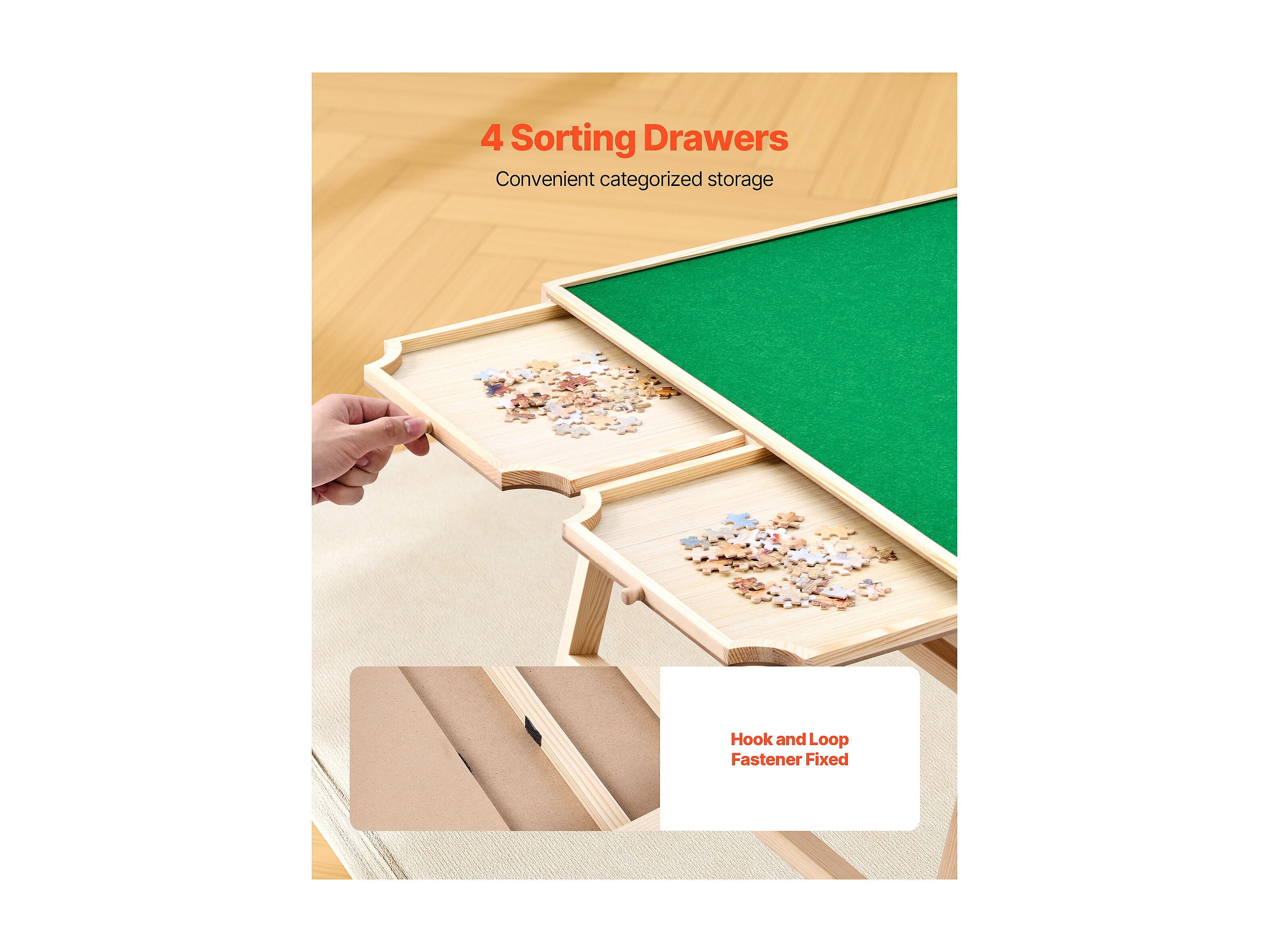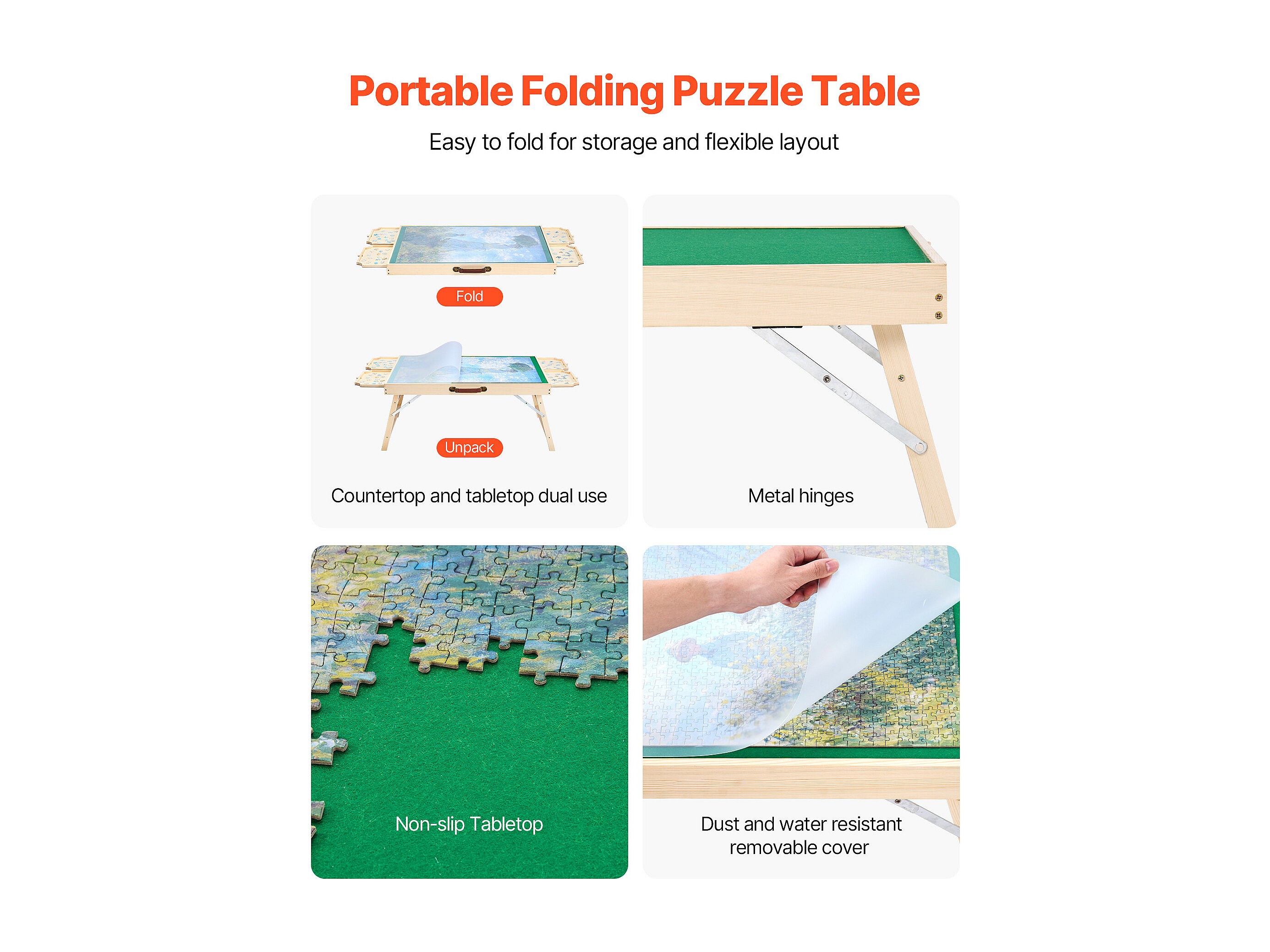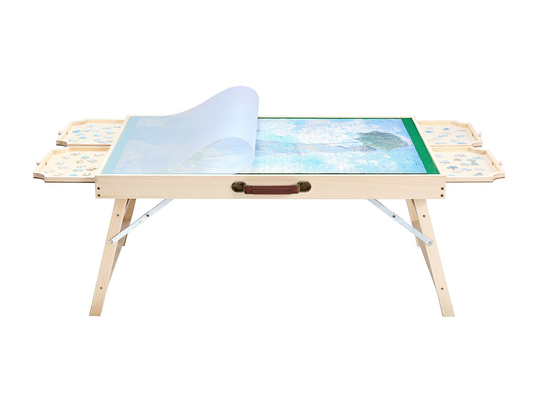 Puzzle Tisch SucceBuy 1500 Teile, Puzzle Brett 86,5 x 63,5 cm, mit Klappfüßen, 4 Schubladen und Abdeckung, Tragbare Puzzle Plattform