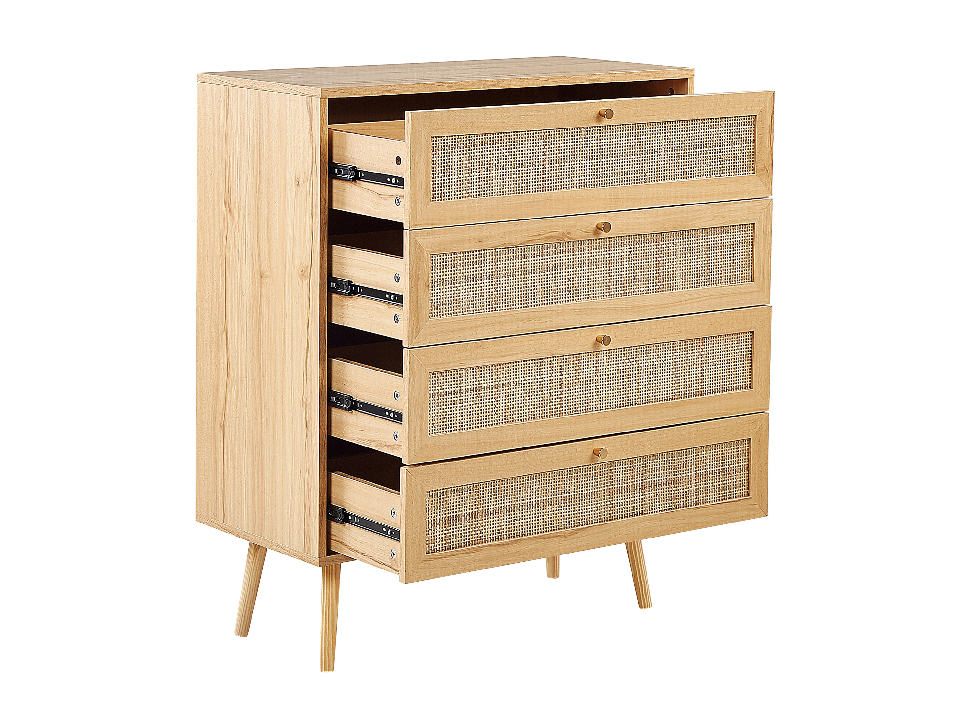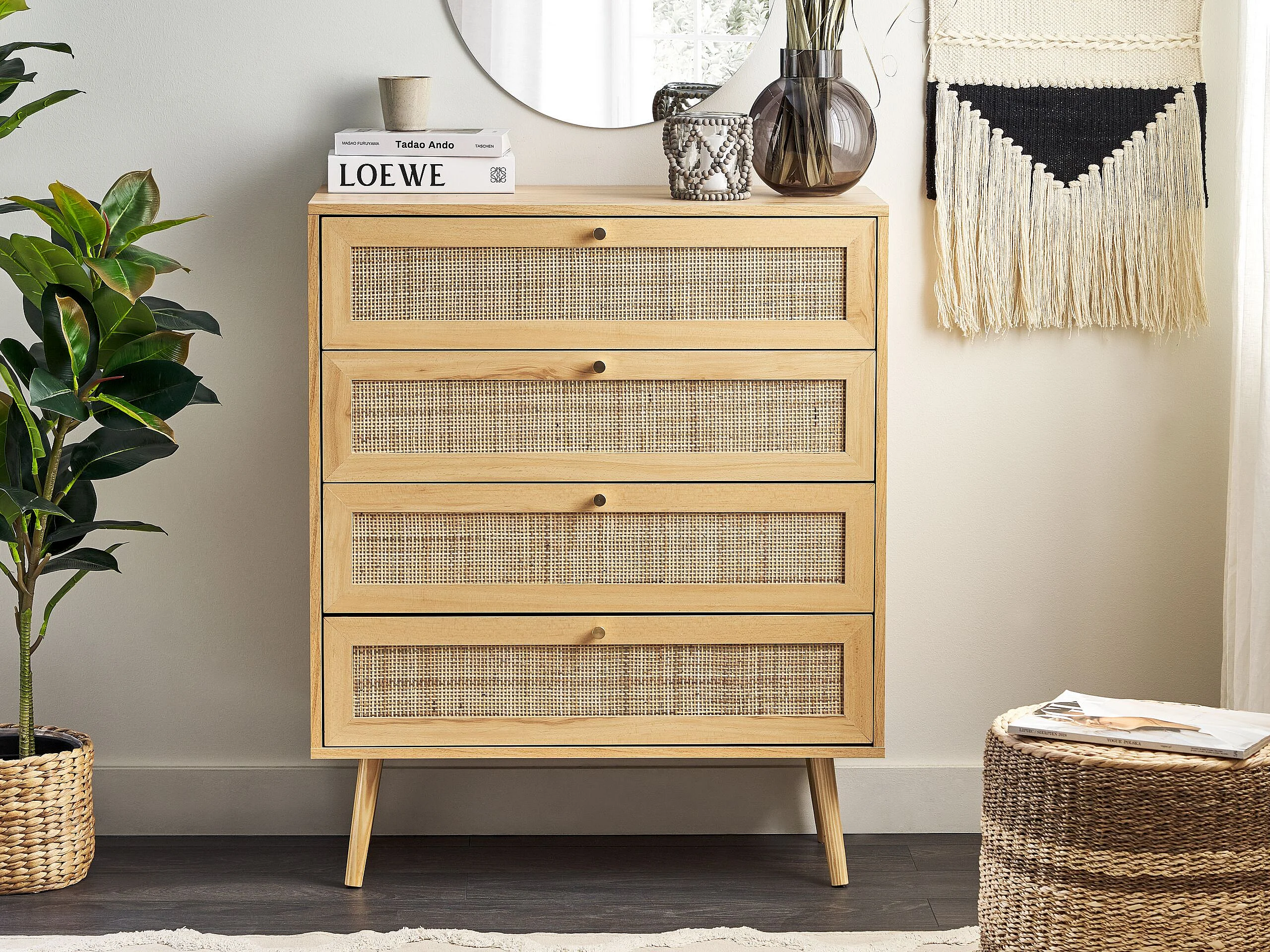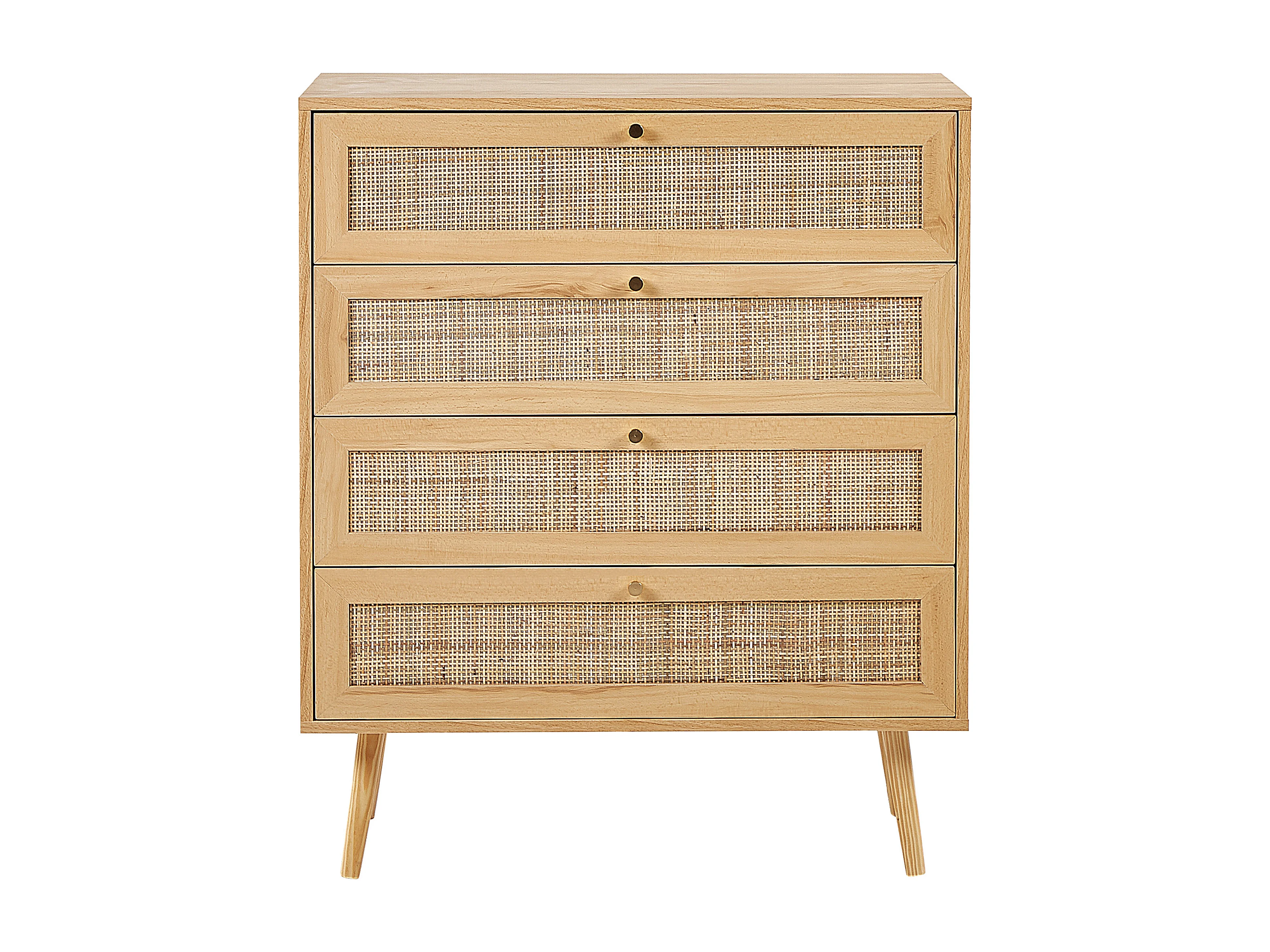 Kommode mit 4 Schubladen aus hellbraunem Rattan im Boho-Stil Perote