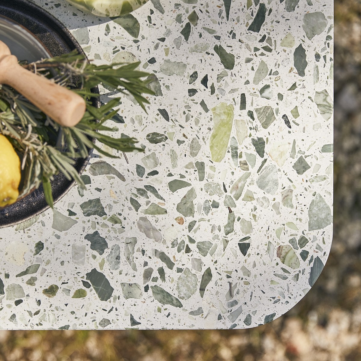 Rechteckiger Gartentisch aus Premium-Terrazzo und Metall 160 cm Elio green