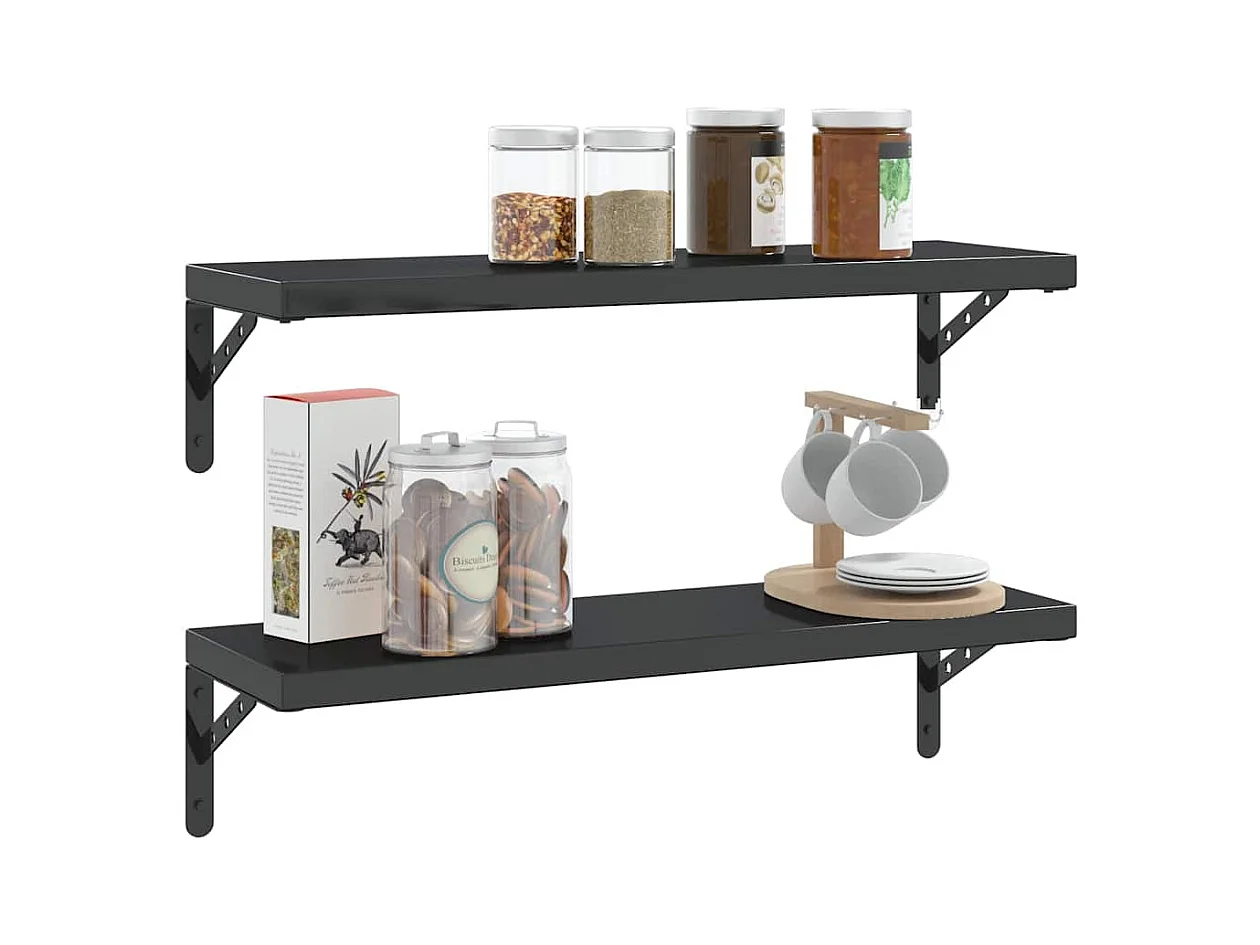 Wandregale 2 Stk. 75x40 cm Schwarz Edelstahl
