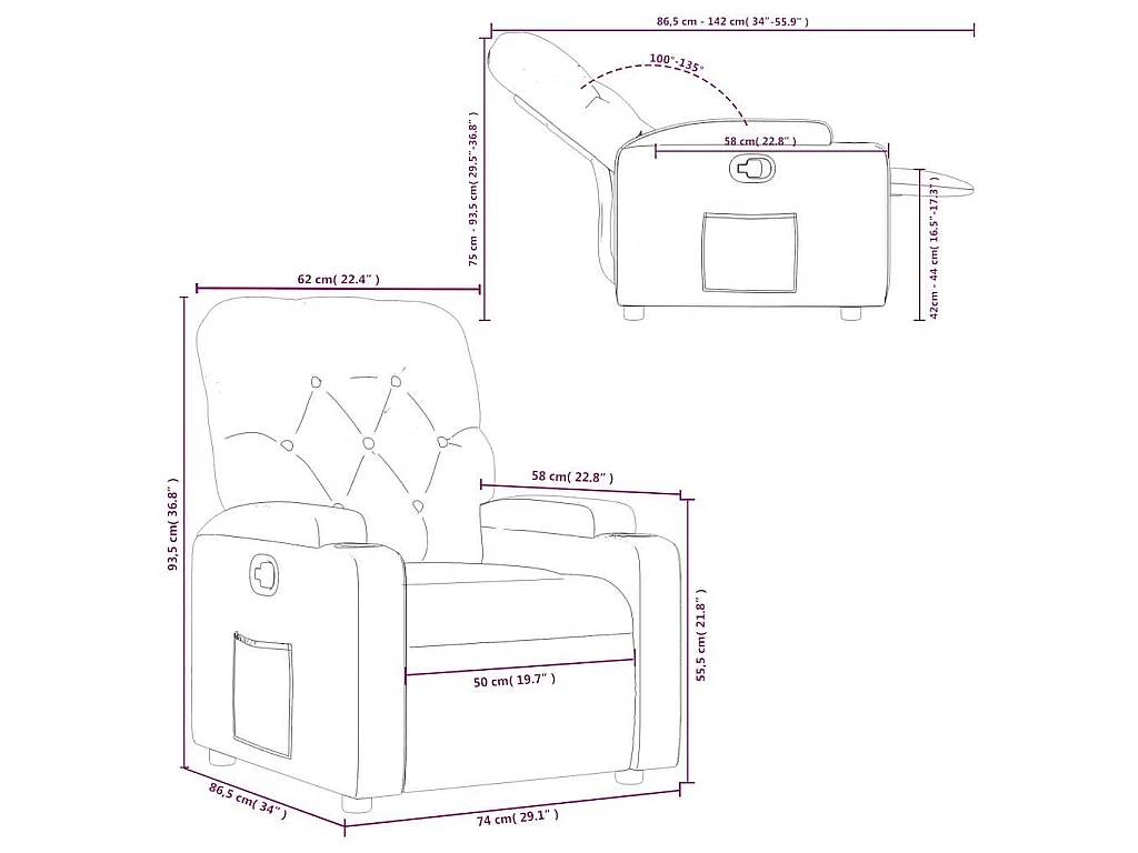 Relaxsessel Braun Stoff Mechanische Relaxfunktion