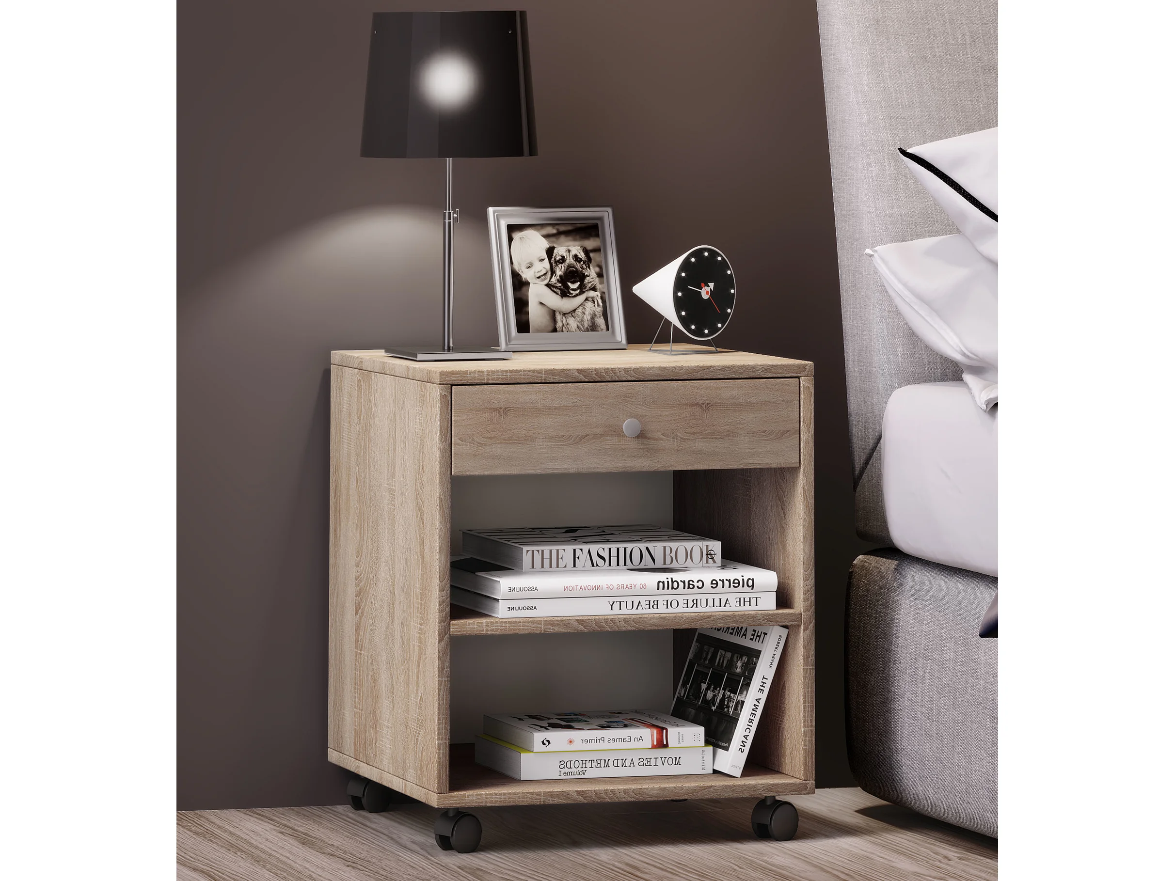 Holz Nachttisch Schrank Rolda Schublade Rollen