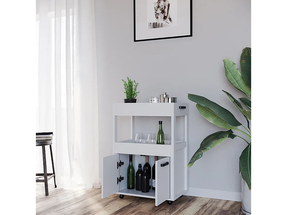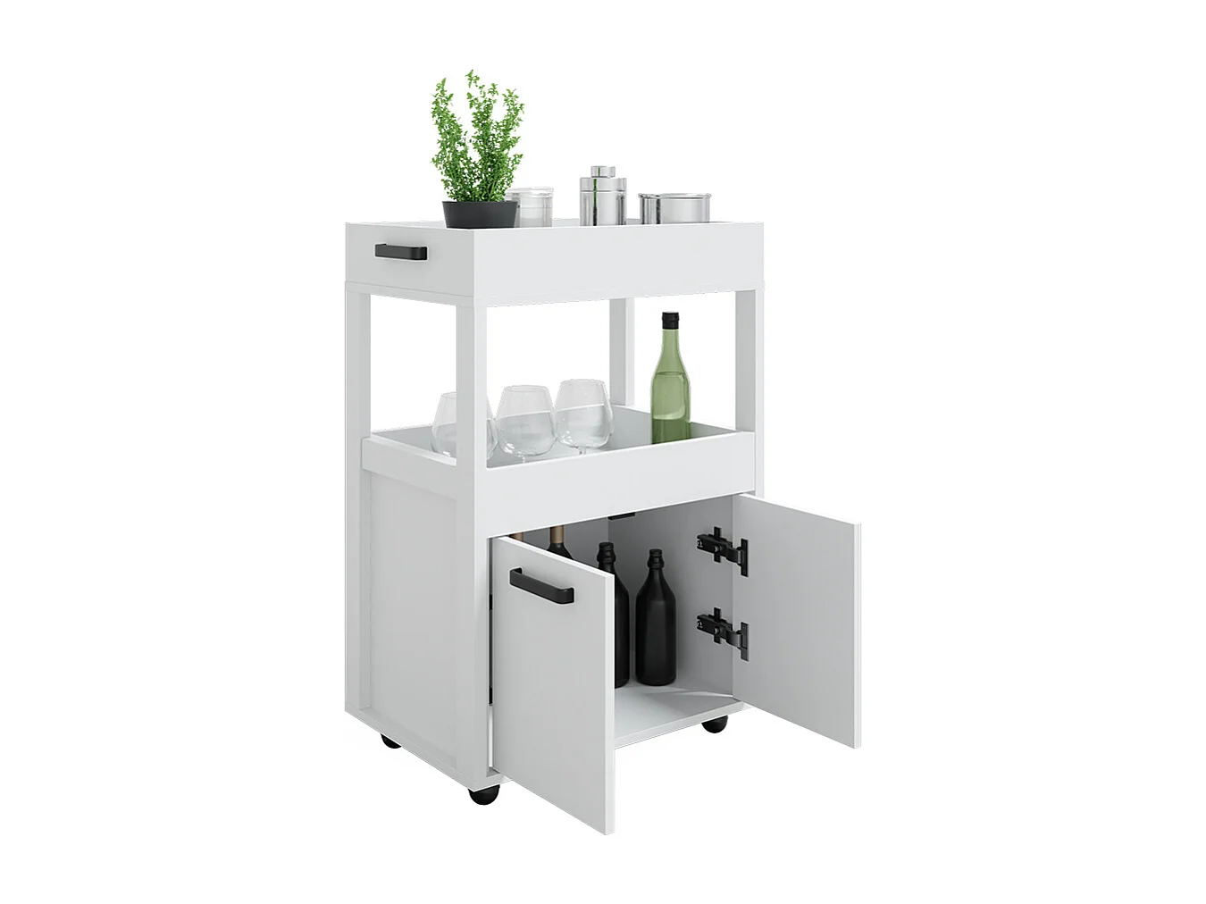 Praktischer Servierwagen mit Ablage Schublade Schrank Landhausstil weiß Trapani