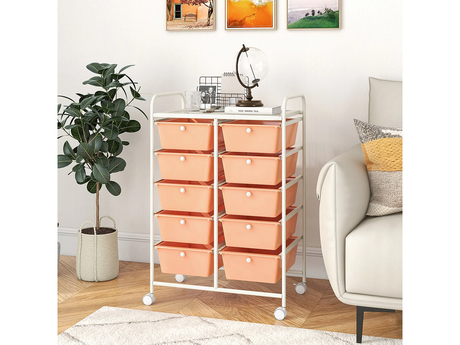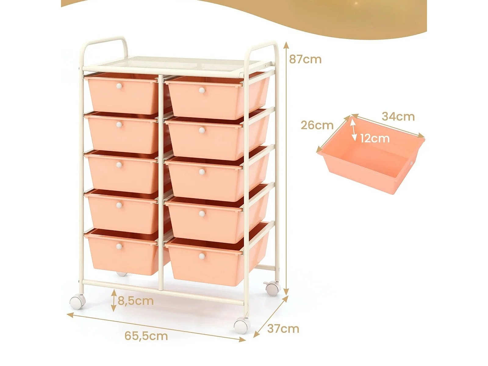 Rollwagen mit 10 Stapelbaren Schubladen Schubladenwagen Rollcontainer Badrollwagen Hellrosa