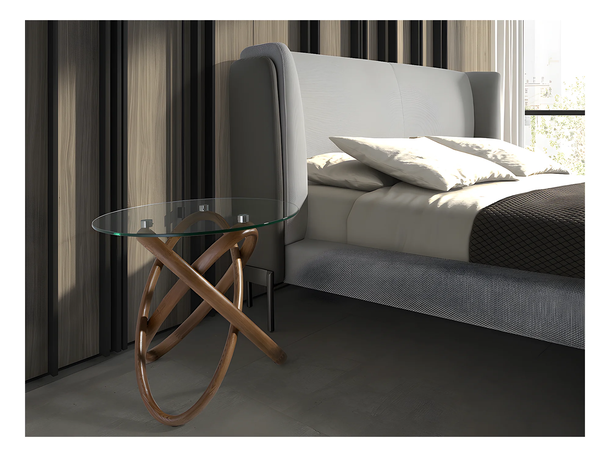 Runder Ecktisch aus gehärtetem Glas und Nussbaum 2126 ANGEL CERDA