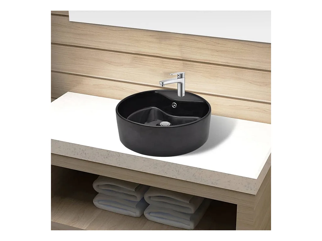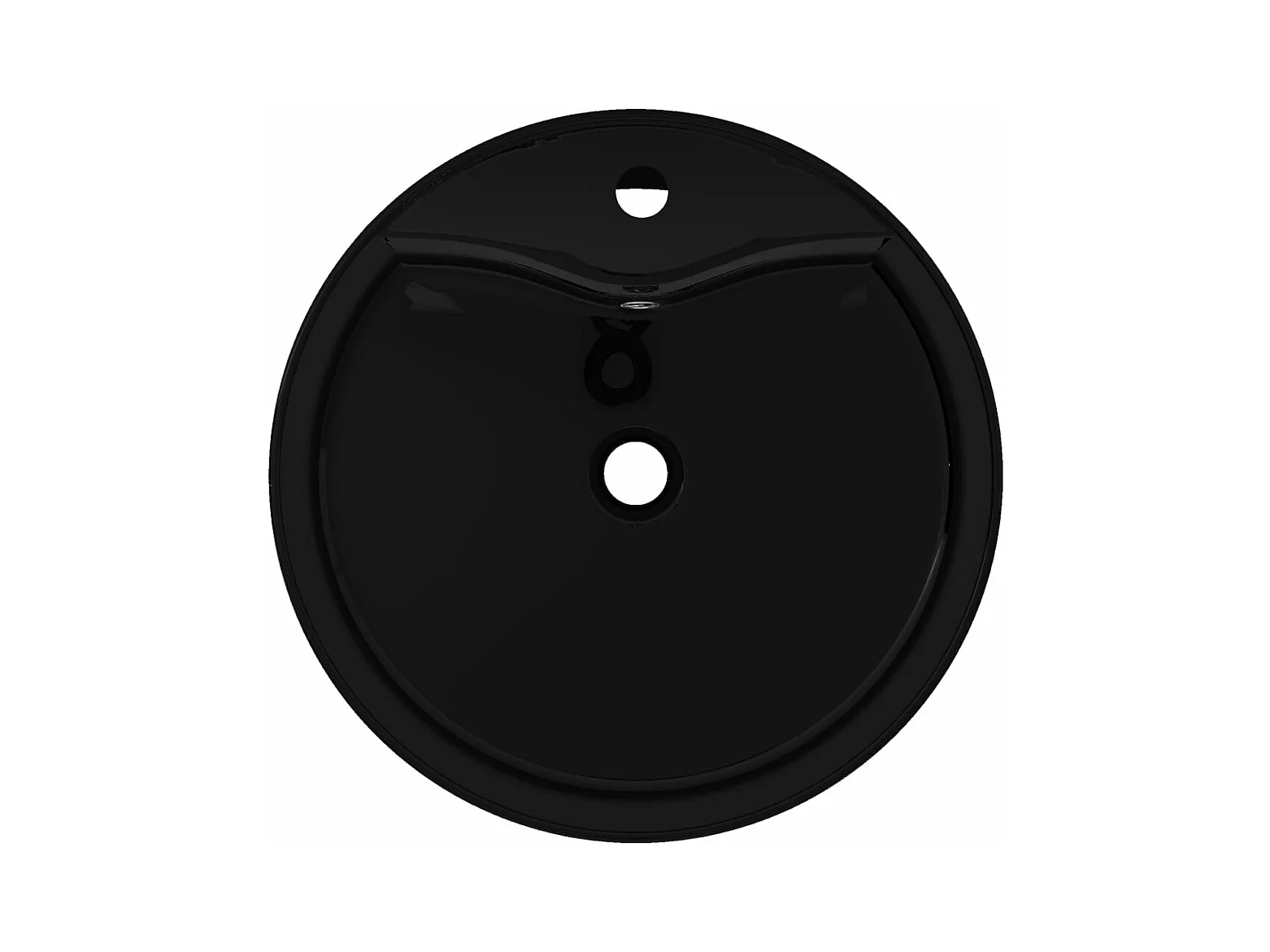 Waschbecken mit Überlaufloch/Wasserhahn. Schwarze Keramik für Badezimmer