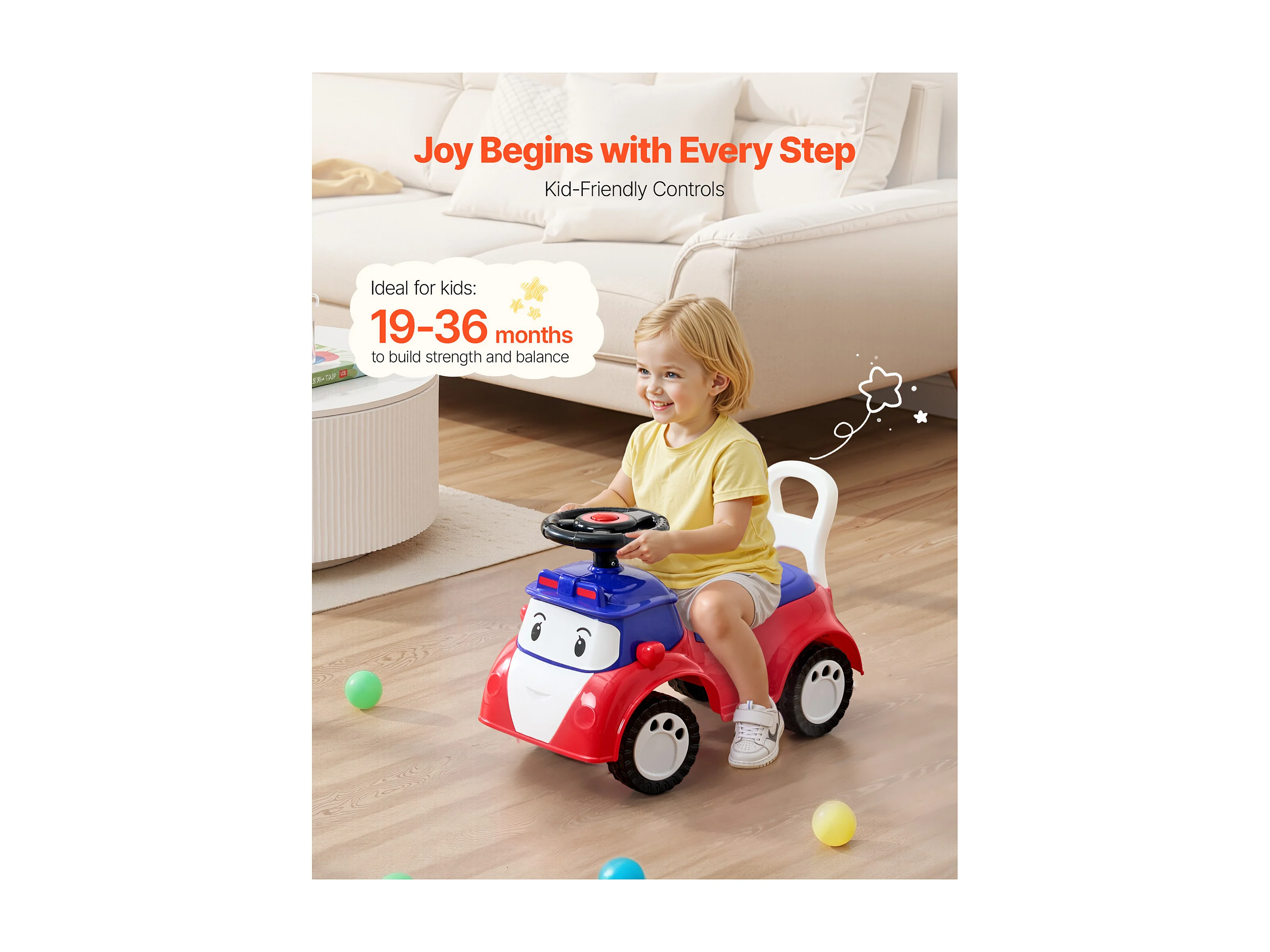 Rutschauto Kinder SucceBuy 19 bis 36 Monate, Schiebeauto für Kleinkinder, Tragfähigkeit 25 kg, mit Musik, Stauraum unter dem Sitz, für Jungen