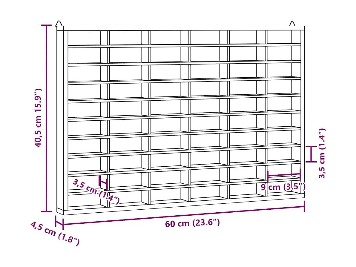 Sammlungsvitrine aus Holz mit 60 Fächern