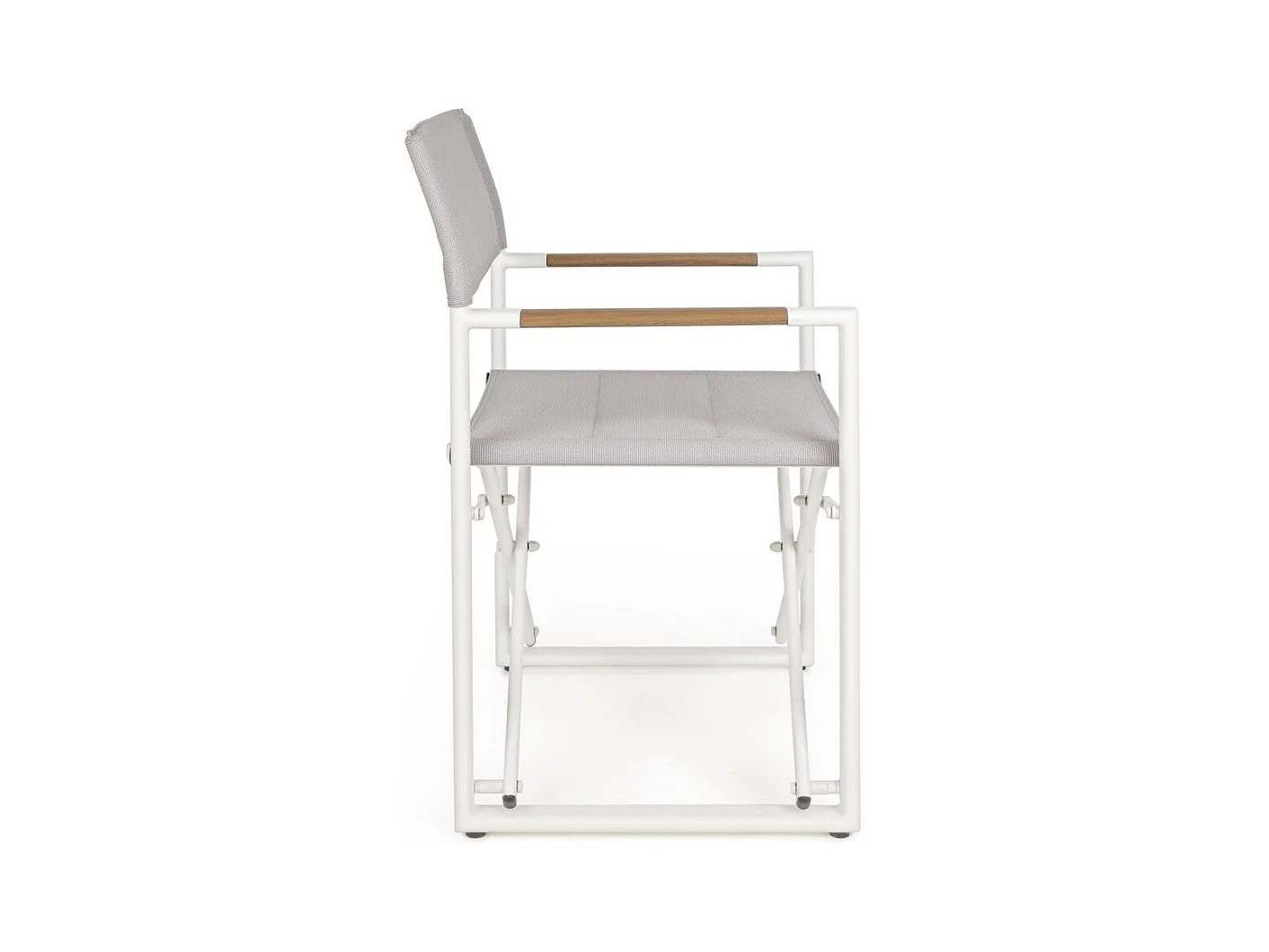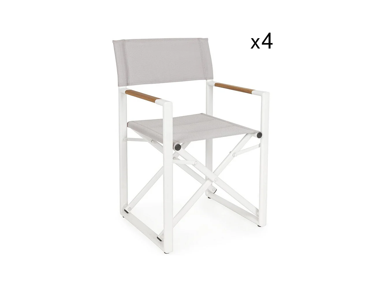 Satz von 4 Regiestühlen aus weißem Aluminium, grauem Textilene, klappbar - LAGUN