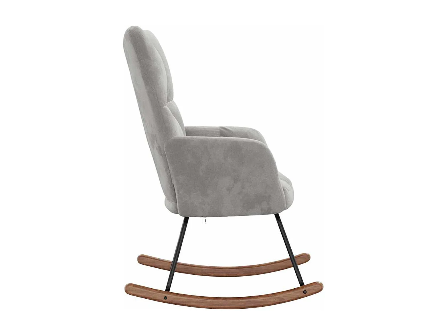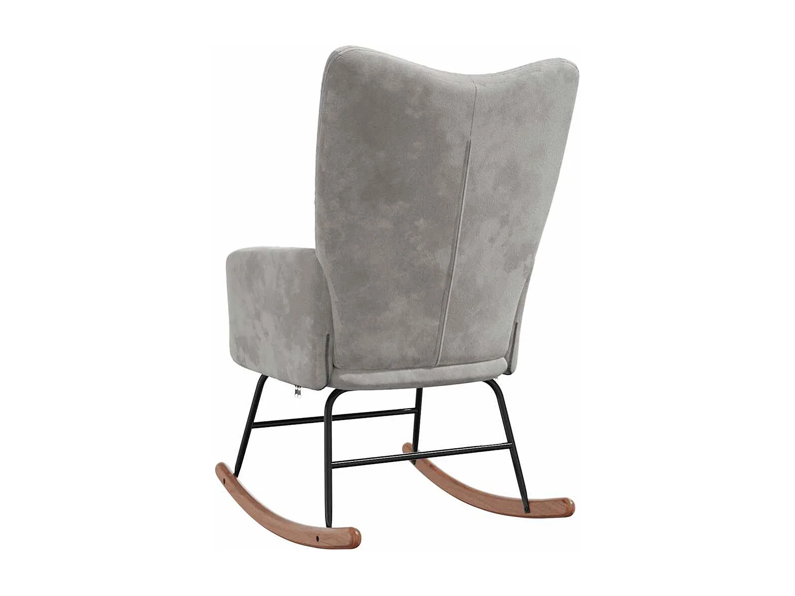 Schaukelstuhl Ohrensessel Hellgrau Samt und Massivholz