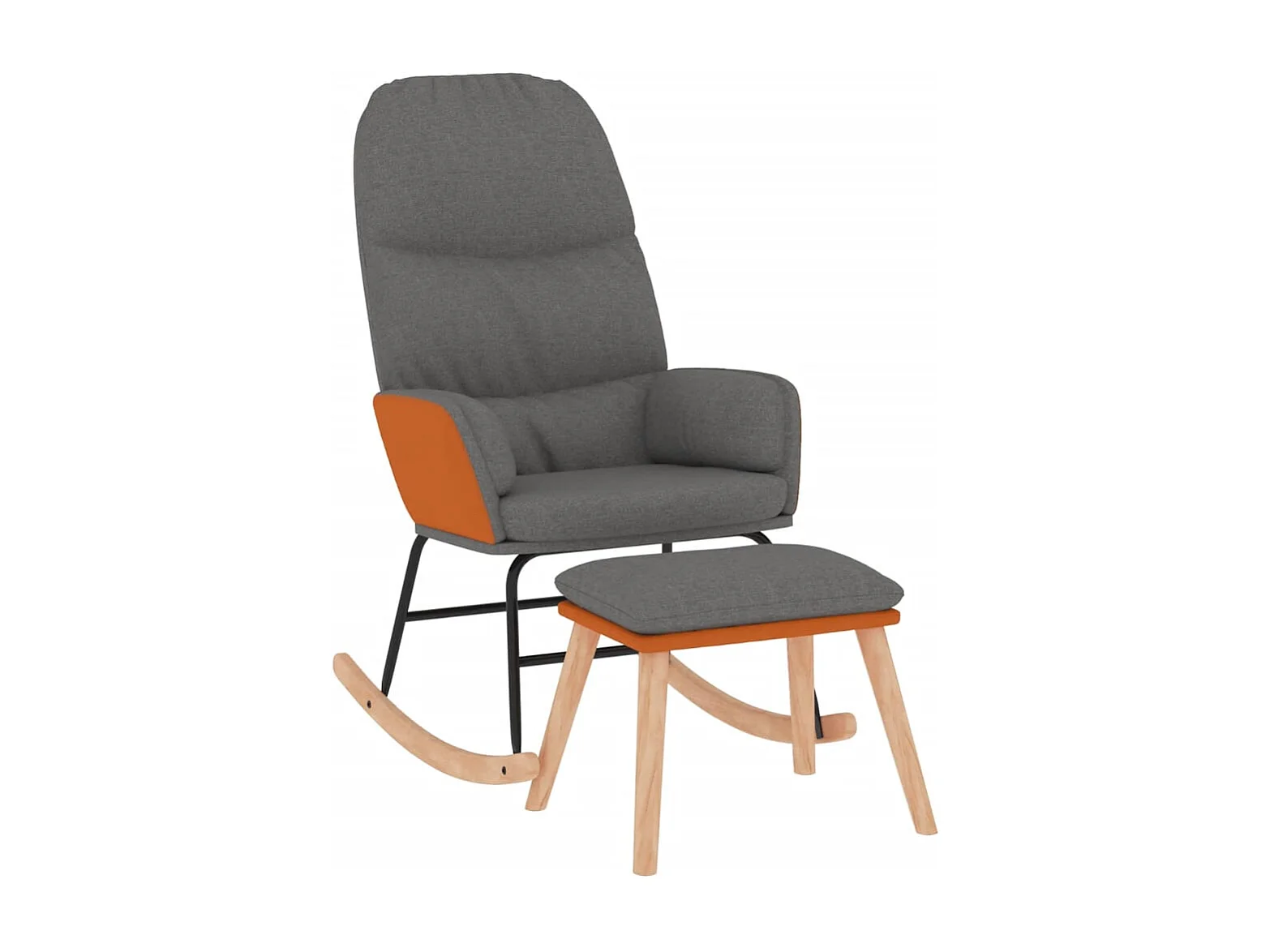 Schaukelstuhl mit Fußstütze. Hellgrauer Stoff